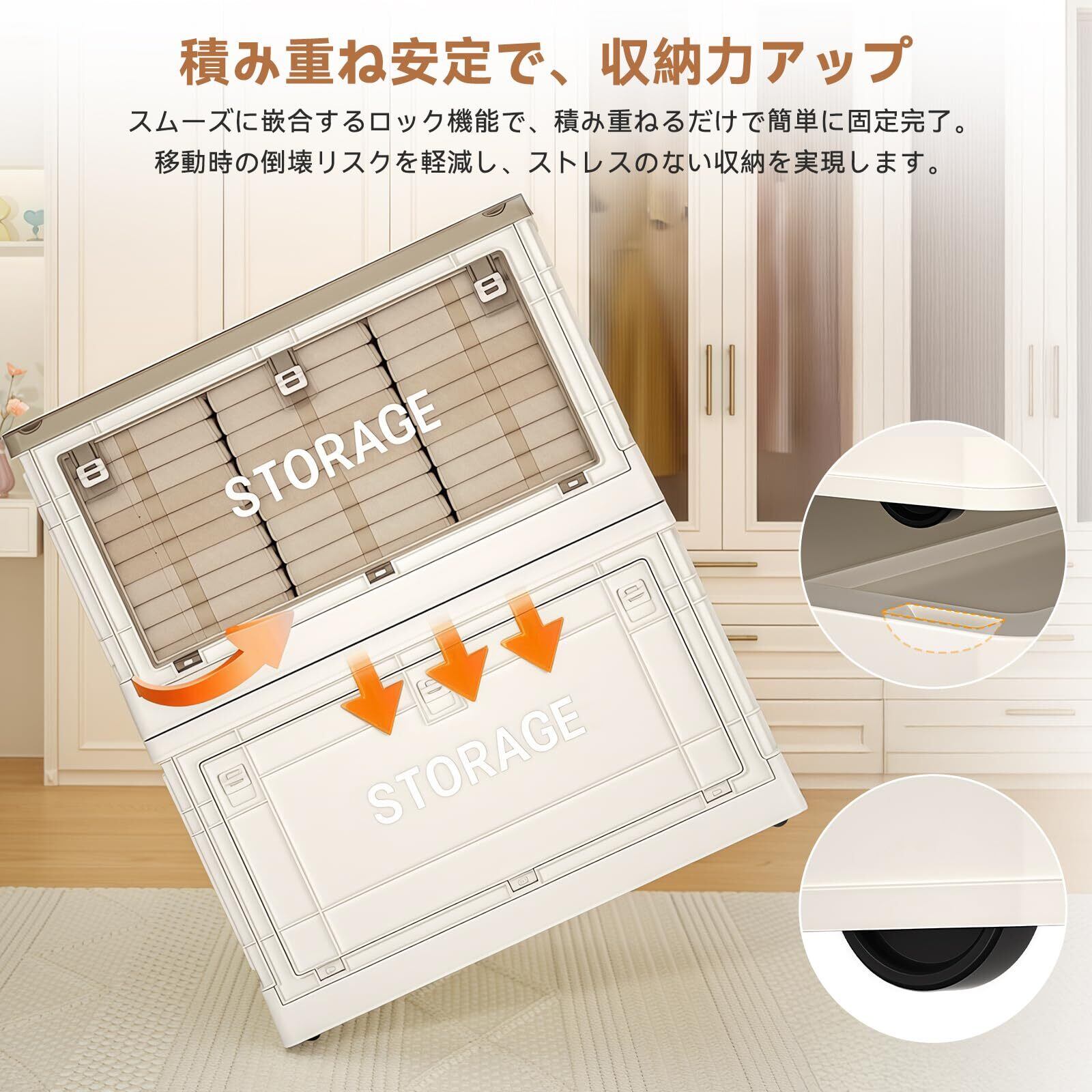 収納ボックス 折りたたみ式 大容量 蓋付き キャスター付き コンテナ 衣類 おもちゃ 布団 書類 本 漫画収納 アウトドア キャンプ用 クローゼット 押入れ対応 おしゃれ(Lサイズ3個:50*35*30cm,52.5L)