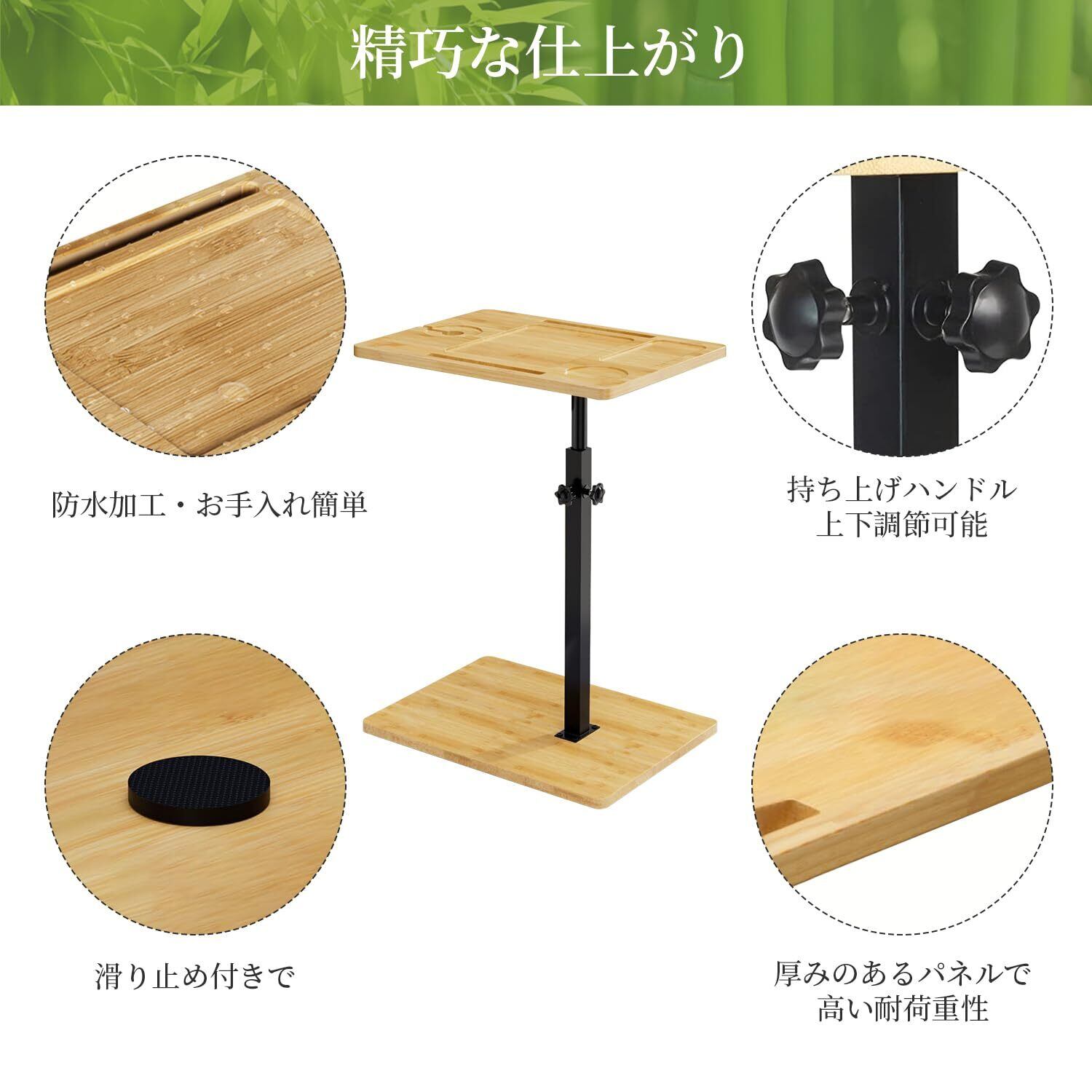 サイドテーブル 昇降式 木製 ワイングラスホルダー付き 高さ調節可能 360度回転 防水 side table 収納付き 省スペース ベッドサイドテーブル ソファ横 テーブル おしゃれ