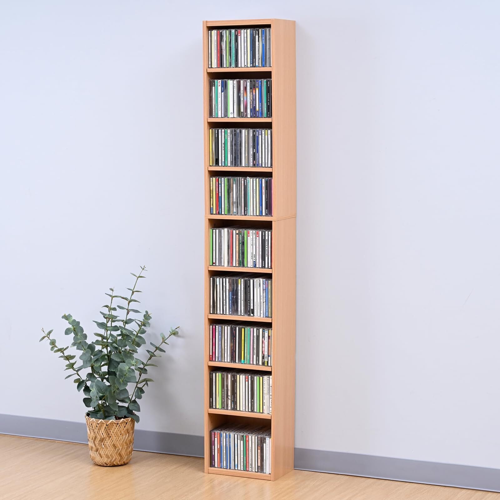 山善(YAMAZEN) ラック 棚 9段 CDラック 本棚 スリム 大容量 可動棚 コミック DVD 収納 幅25.5×奥行17×高さ150cm 収納棚 シェルフ 省スペース 組立品 ナチュラル CCDCR2615(NA)R