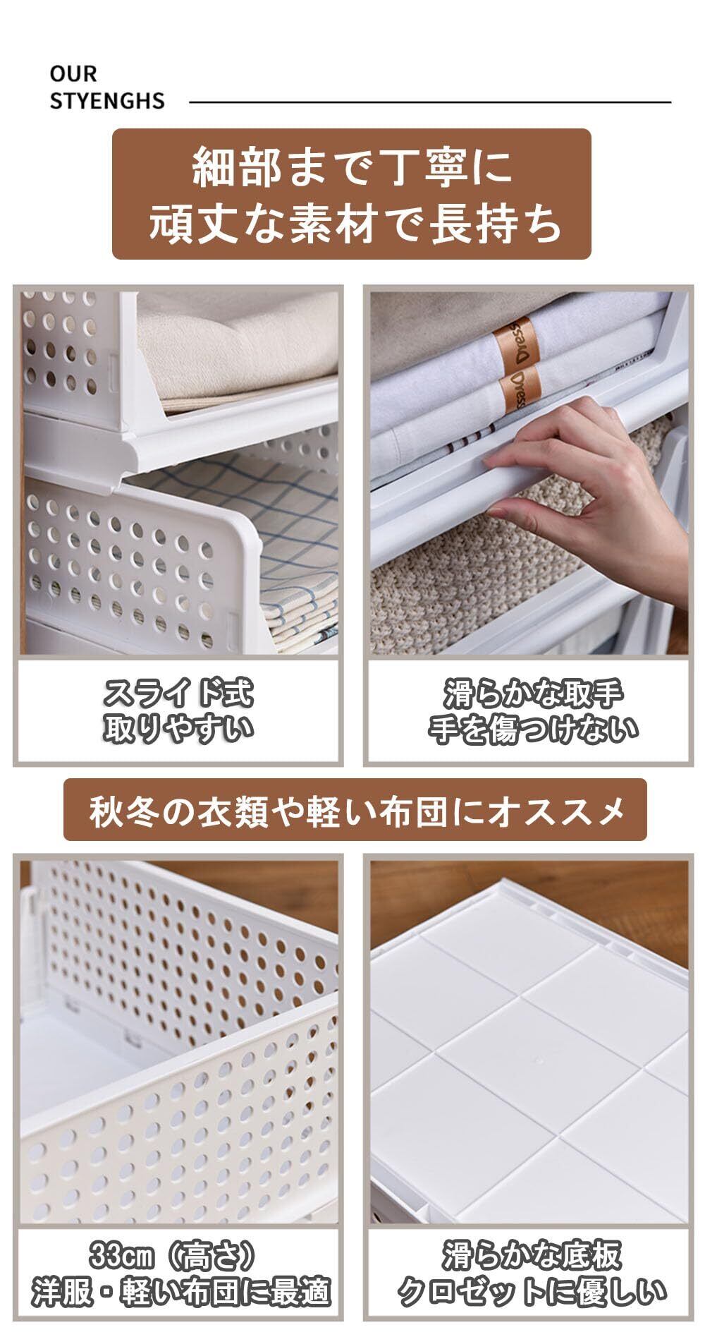 【通気性と機能性】製品の周りには通気穴があって、湿気を簡単に放出させ、クローゼットの中・キッチン・洗面所・浴室の隙間収納にも適用します。洋服、玩具、バッグなどの整理整頓にぴったりです。クローゼット収納だけでなく、キッチンやお風呂等のシーンにも適用します。スペースを活用しましょう!(drawers for clothes、plastic storage box、衣物收纳)