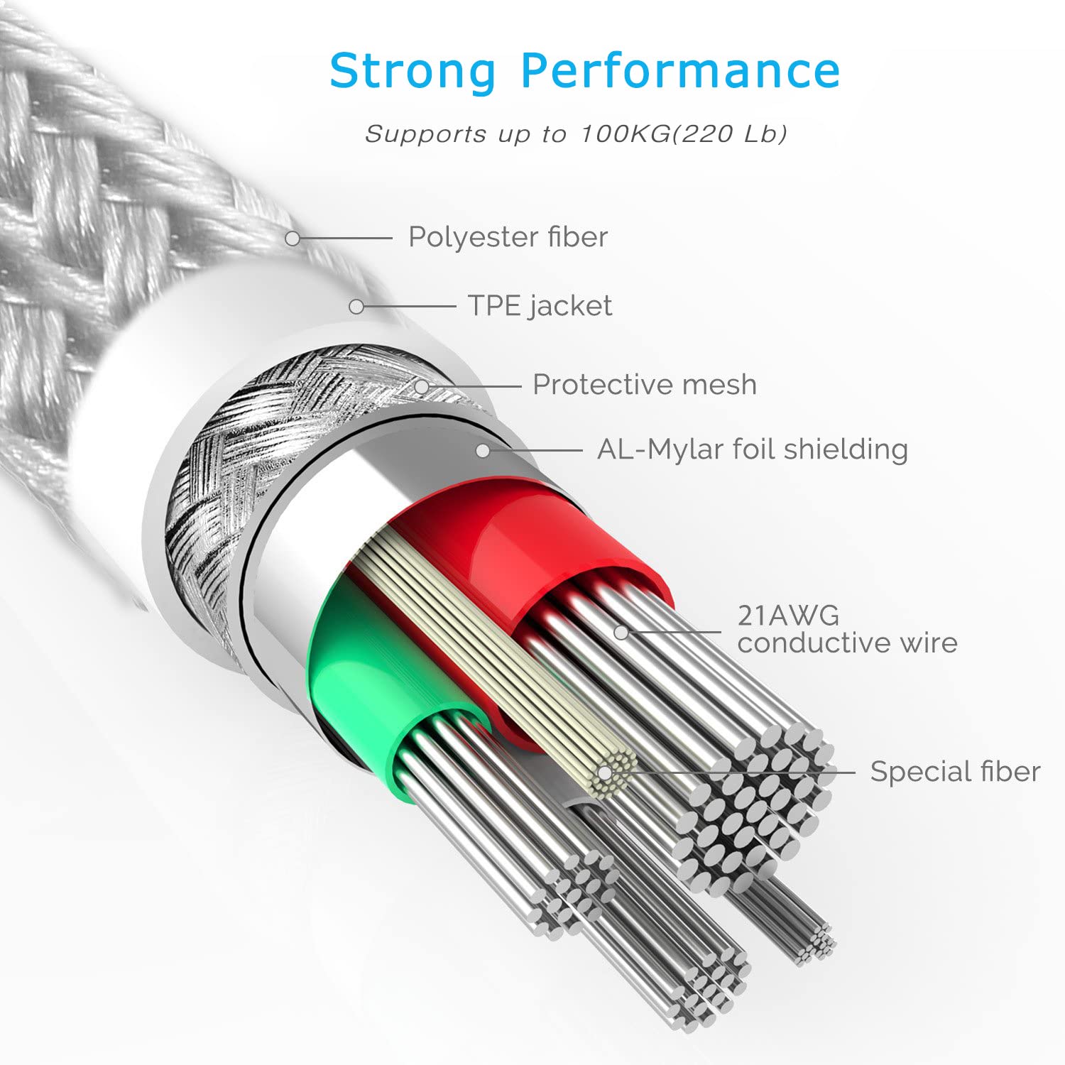 【究極の耐久性】:プレミアムナイロン編組タiphone 充電器 ケーブル,一般的なケーブルより10倍以上の耐久性をもち、10000回以上の厳しい折り曲げテストもクリアしました。lightning ケーブル内部のワイヤーを断線から保護し。アルミ合金製コネクタは、高耐久性で抜挿寿命性向上,安心して充電することができます。