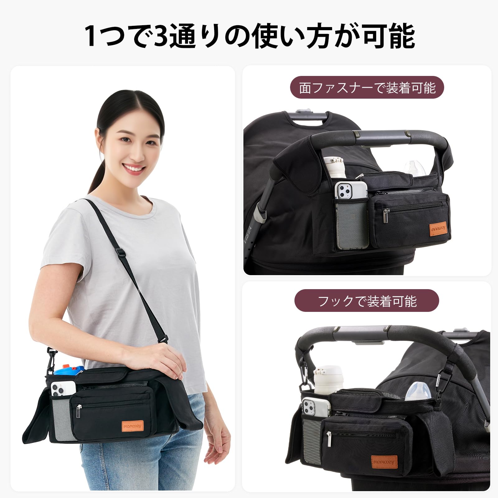 Momcozy ベビーカー用バッグ|ドリンクホルダー|大容量 ベビー収納·オムツポーチ|インナーバッグ 哺乳瓶付き|多機能オーガナイザー|肩掛け・手提げ対応
