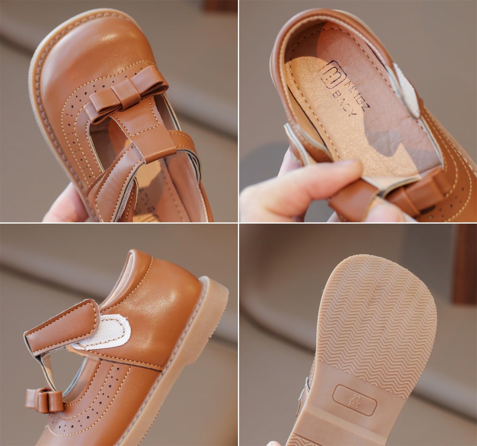 【上質な素材】上質な合成皮革で作られており、ソフトな肌触りで足にフィットして馴染みやすく、お子様のデリケートなお肌を刺激からしっかり守り、心置きなくお使いいただけます。さらに、天然革のような美しい艶を放ち、高級感に溢れていて足元を華やかに演出してくれます