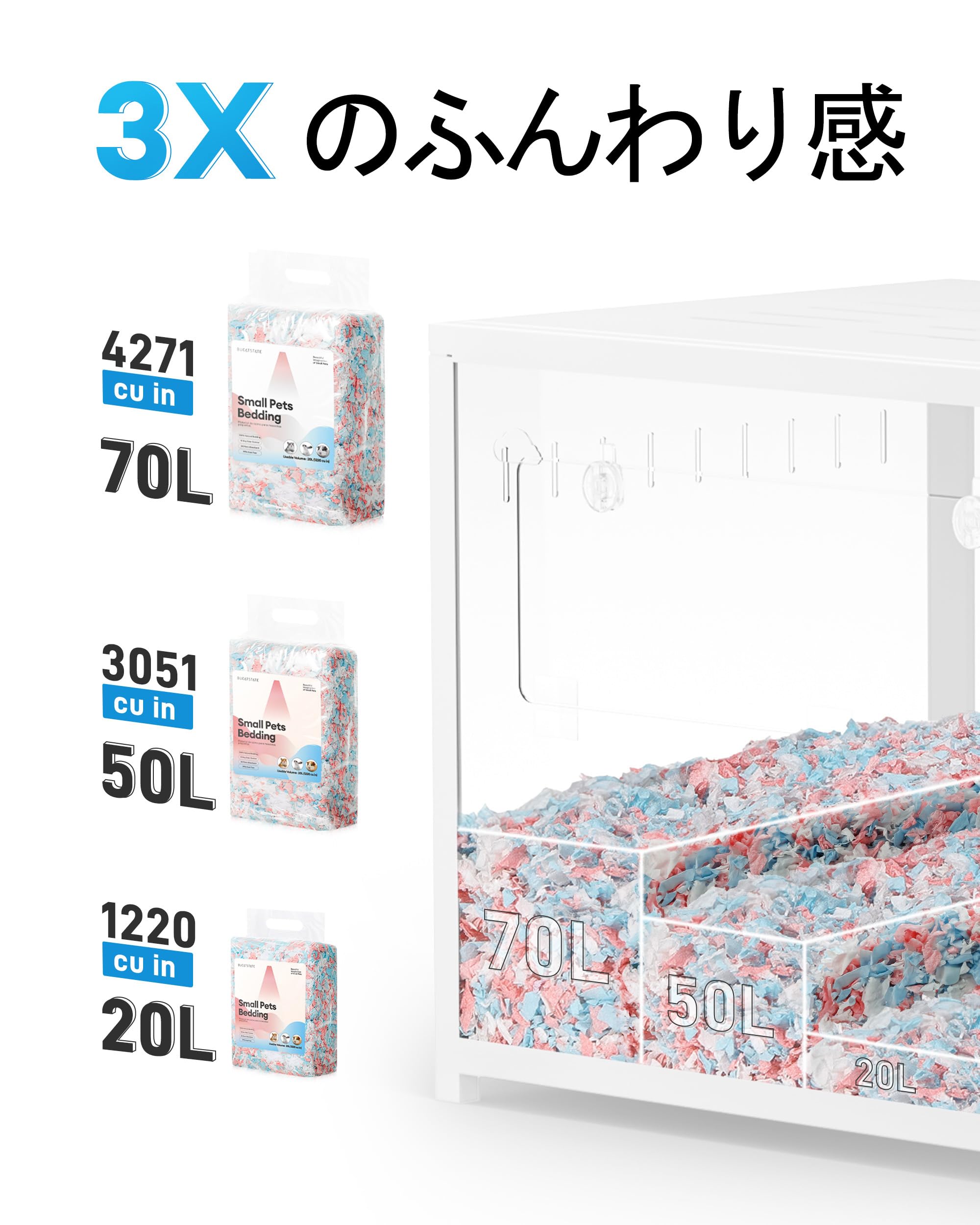 BUCATSTATE ハムスター 床材 紙 無塵【圧縮パッケージ 大容量】ハムスター マット 広葉樹マット 小動物 床材 雲の上で眠るような柔らかさ 超ふわふわ クラウドシリーズ 天然素材 紙 消臭 快適 うさぎ マット ハムスター モルモット ウサギ ハリネズミ フクロモモンガ 小動物用 床材 50L ホワイト LYCX