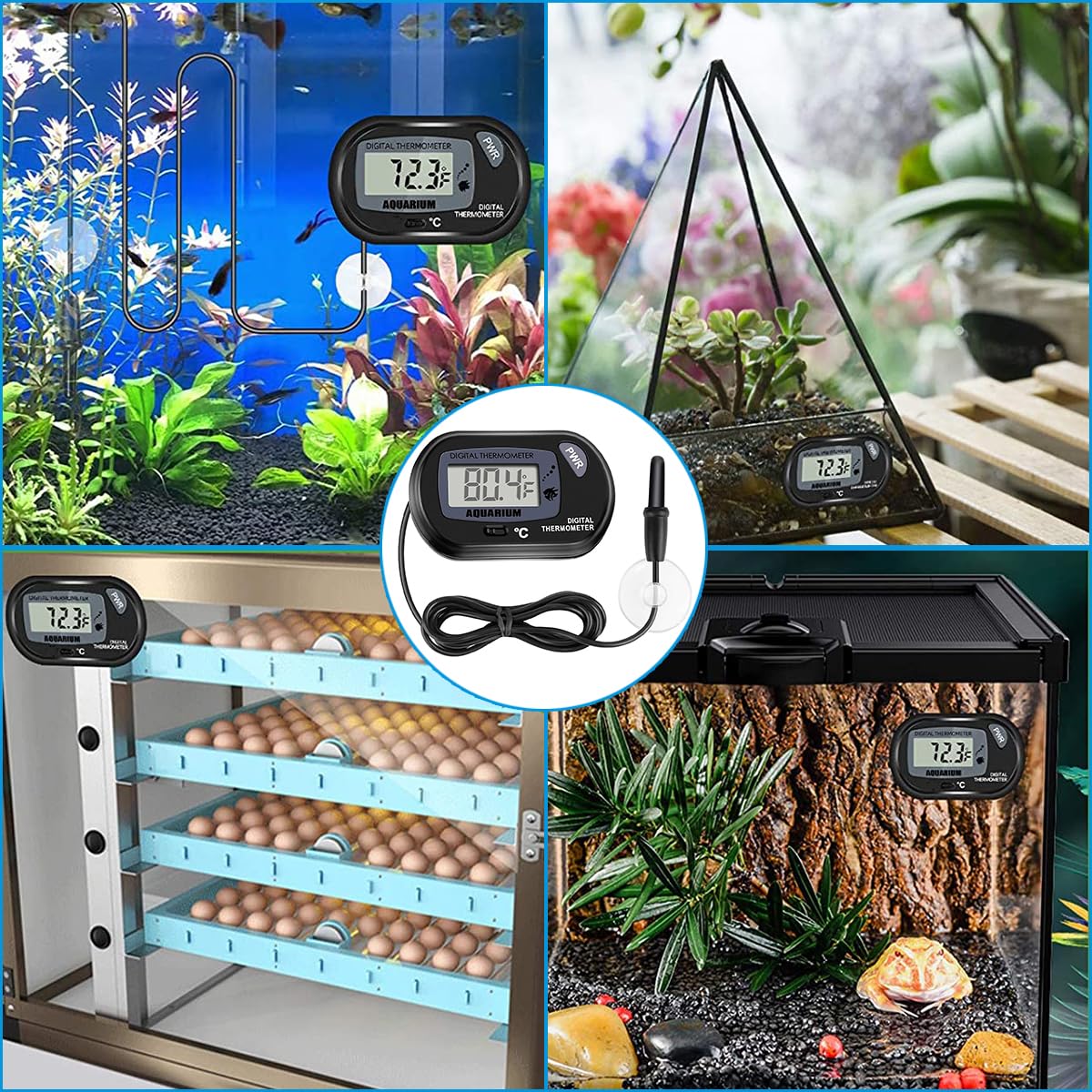 【直感的で読みやすい】液晶画面を読みやすい。誤差は0.1度以内で、日常の温度観測にとって十分です!水槽、アクアリウムやテラリウムの水温管理に最適です。
