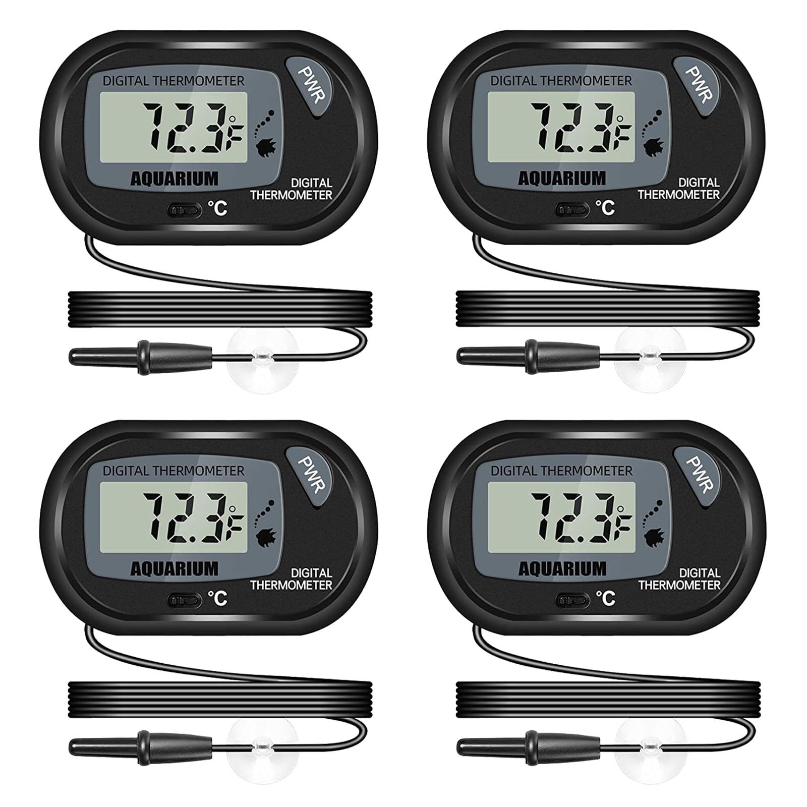 サムコス LCDデジタル温度計 吸盤付き -50℃~70℃ 温度モニター冷蔵庫 魚タンク 爬虫類 水族館用 温度計 小型 簡単便利 4個セット (ブラック)