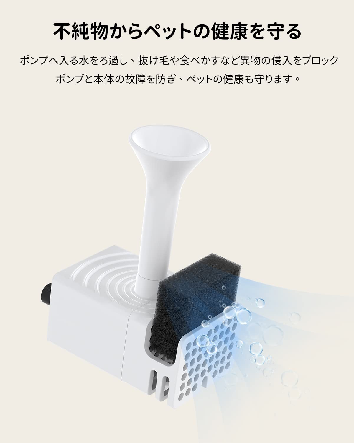 清掃時間わずか:ペット用の噴水を最良の状態に保つためには、ワイヤレスのポンプを2週間に1度、徹底的に分解して清掃することをお勧めします。ブラシを使用して、ポンプの内部を簡単に清掃してください。