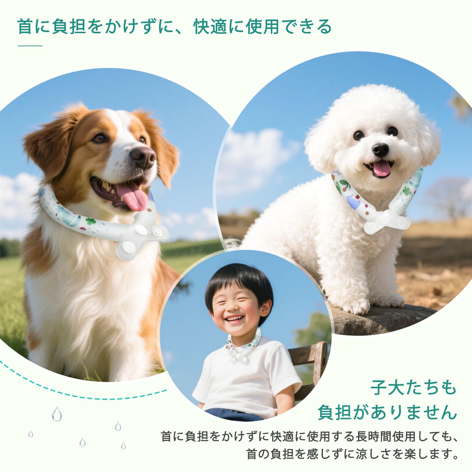 【簡単装着&調整可能】ネッククーラーがボタン付きで簡単に装着でき、首のサイズに合わせて調整可能です。犬だけでなく、猫にもお使いいただけます。