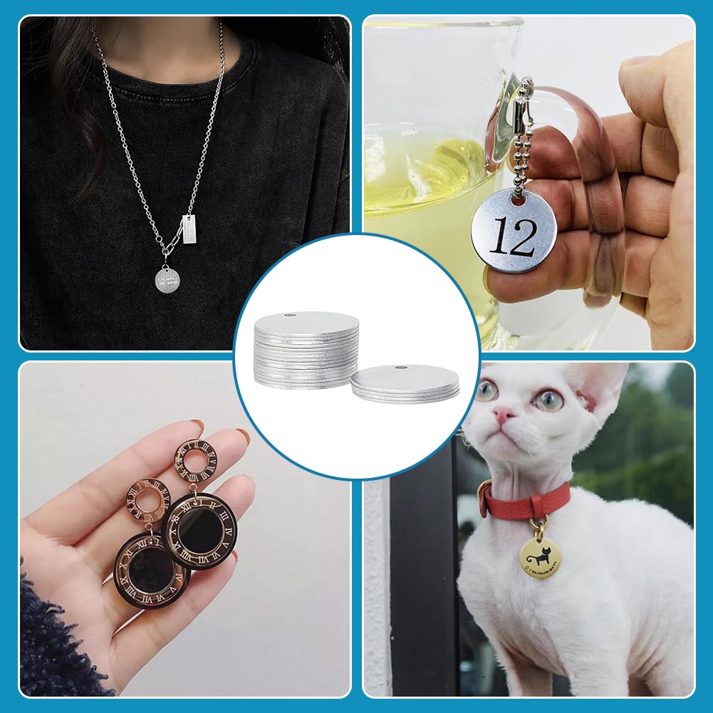 BENECREAT 30枚アルミ札 ネームタグ トラベルバッグタグ DIYブランクアルミ札 迷子札 猫犬 首輪用 IDタグ 刻印 名入れ DIY工芸品札 円形