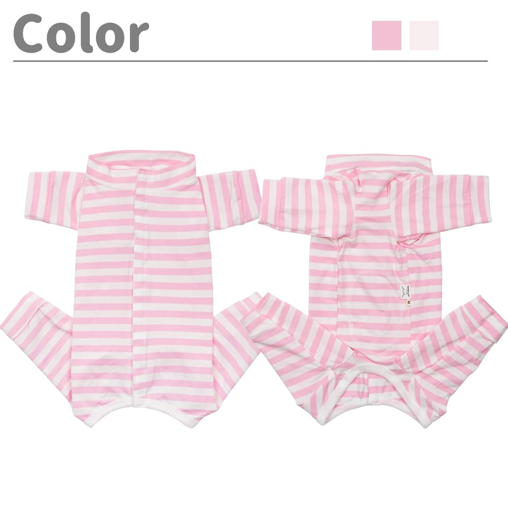 PET 犬 術後服 長袖 術後ウェア 術後カバー服 オス メス 虫よけ対策 避妊 離乳 傷口保護 皮膚病 通気 小型犬 中型犬(M、ピンクボーダー)