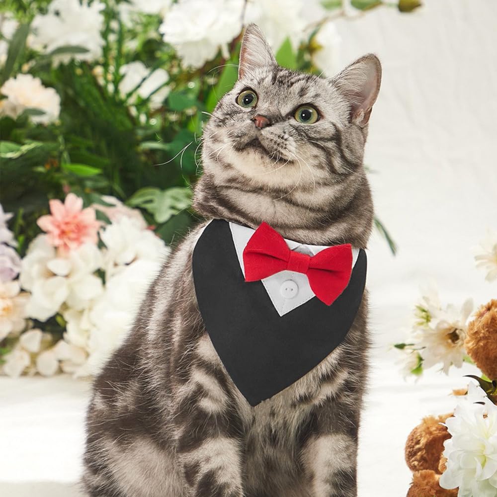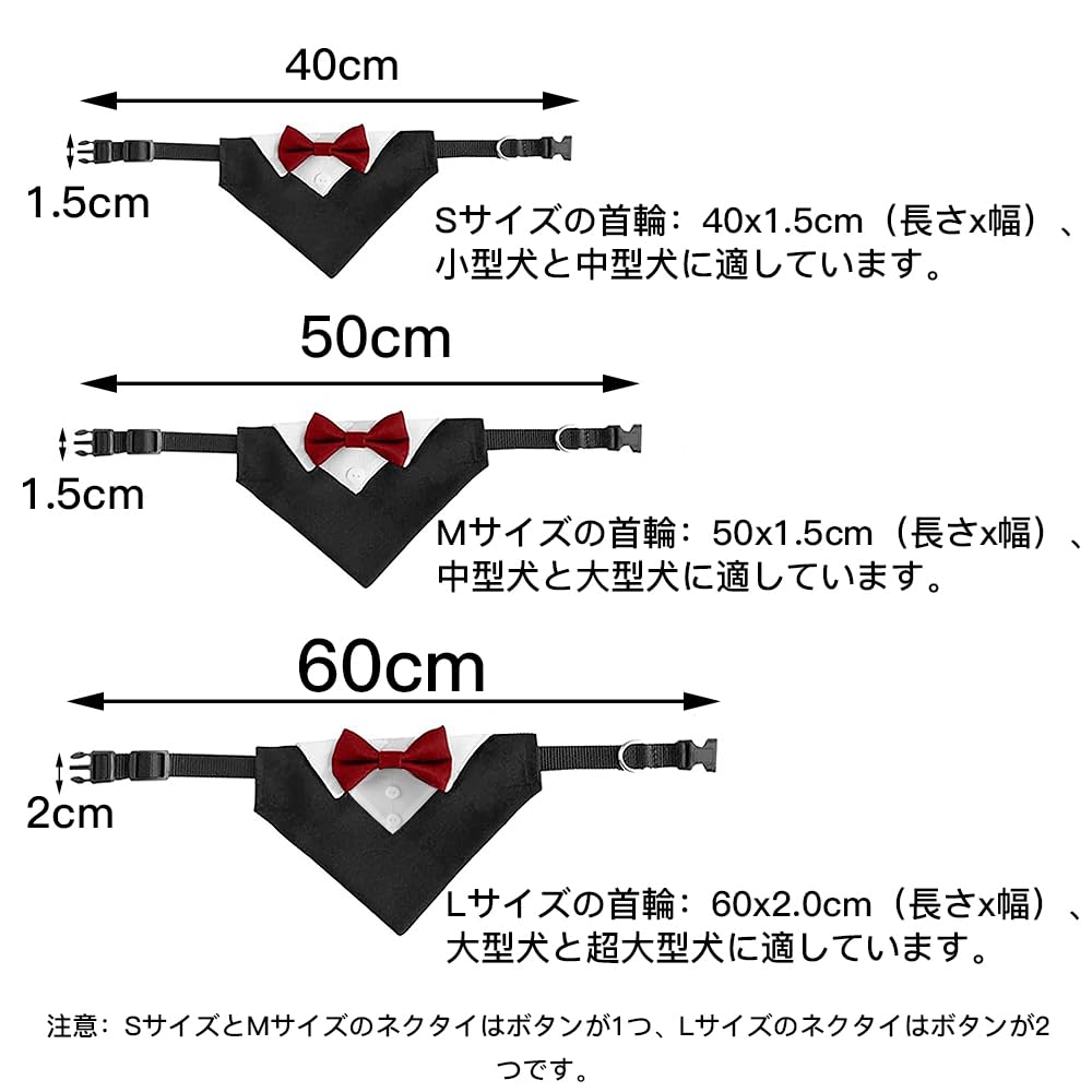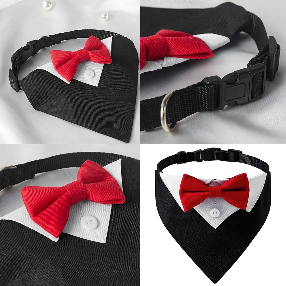 フォーマルドッグタキシードバンダナ 犬猫用スカーフ 犬のタキシードコットンバンダナ 蝶ネクタイとネクタイ付き 誕生日 結婚式 パーティー 記念撮影(レッド M)