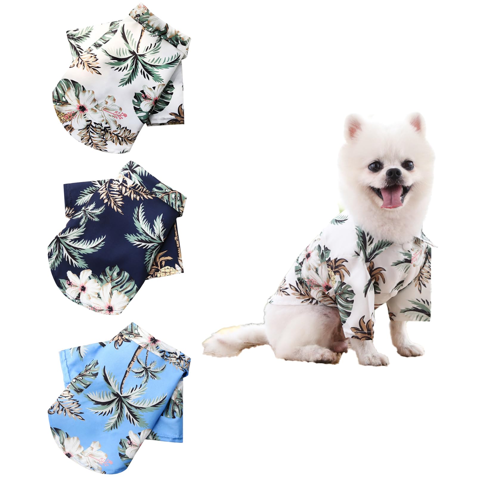 犬服 ペット ビーチシャツ 3個入 春夏秋 可愛い 小中型犬服 薄 ハワイアンシャツ ドッグウェア ペットウェア 通気性 S~2XL お散歩お出かけウェアに ドッグウェア ベスト 日焼き防ぐ 脱毛保護 (ブルー、ホワイト、ライトブルー M【日本国内出荷】)