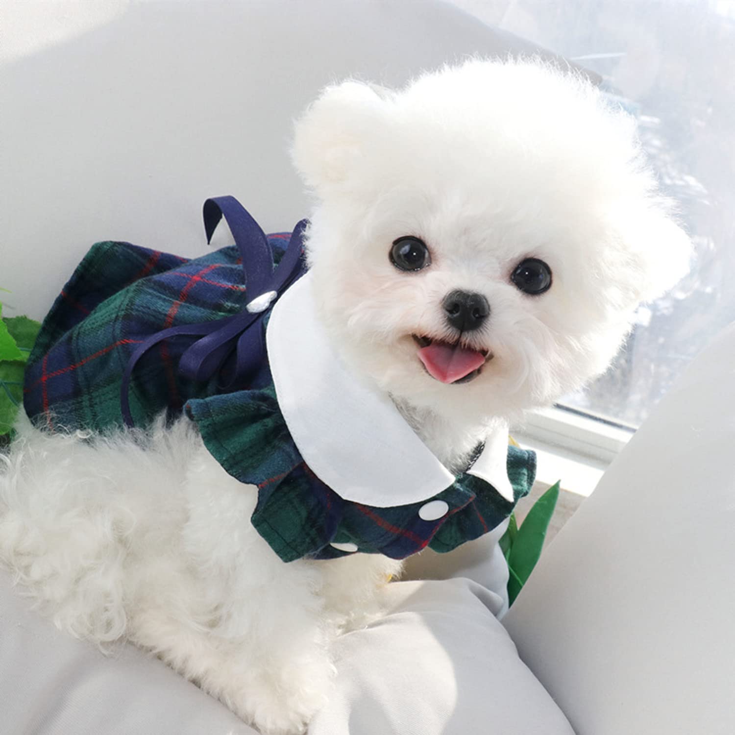 犬服ワンピース春夏秋ワンピースチェック柄夏犬ドレスペット服犬服スカート綿製小型犬中型犬かわいいリボン脱毛保護の日焼かない猫服記念撮影ペット服通気散歩お出かけ吸水速乾服 (グリーン M)