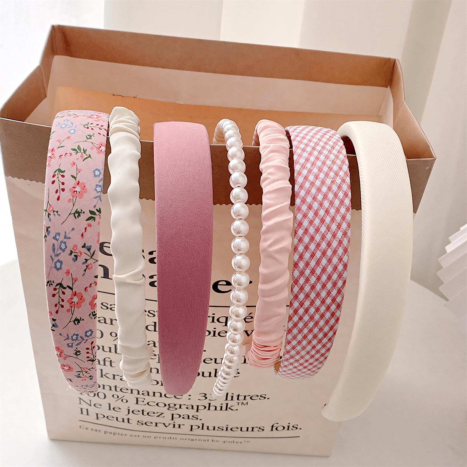 7種類で毎日楽しめる、お得な7本セットです。色合いがきれいな柄なので、頭に付けるとオシャレでかわいいです。シンプルで、シーンを選ばずに毎日でも使えるヘアバンドです。頭を傷めないデザインで、長時間痛くないです。