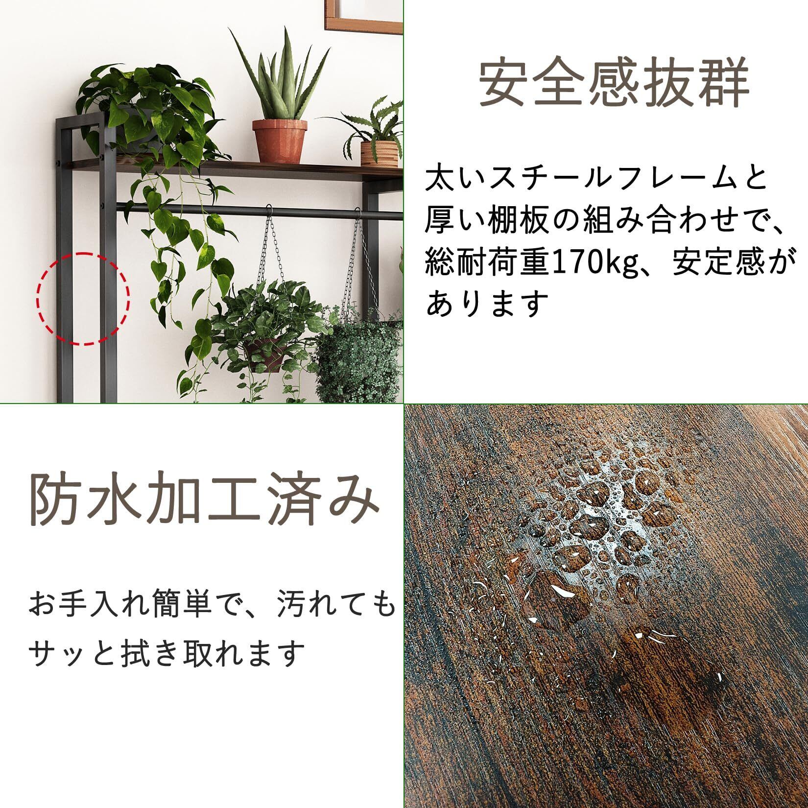 【安全感抜群なスチールラック】太いスチールフレームと厚い棚板の組み合わせで、ネジでしっかりと固定されたため、耐荷重の高くて安定感があり、鉢植えや、たくさんの本・雑誌を収納したい人にも向いています