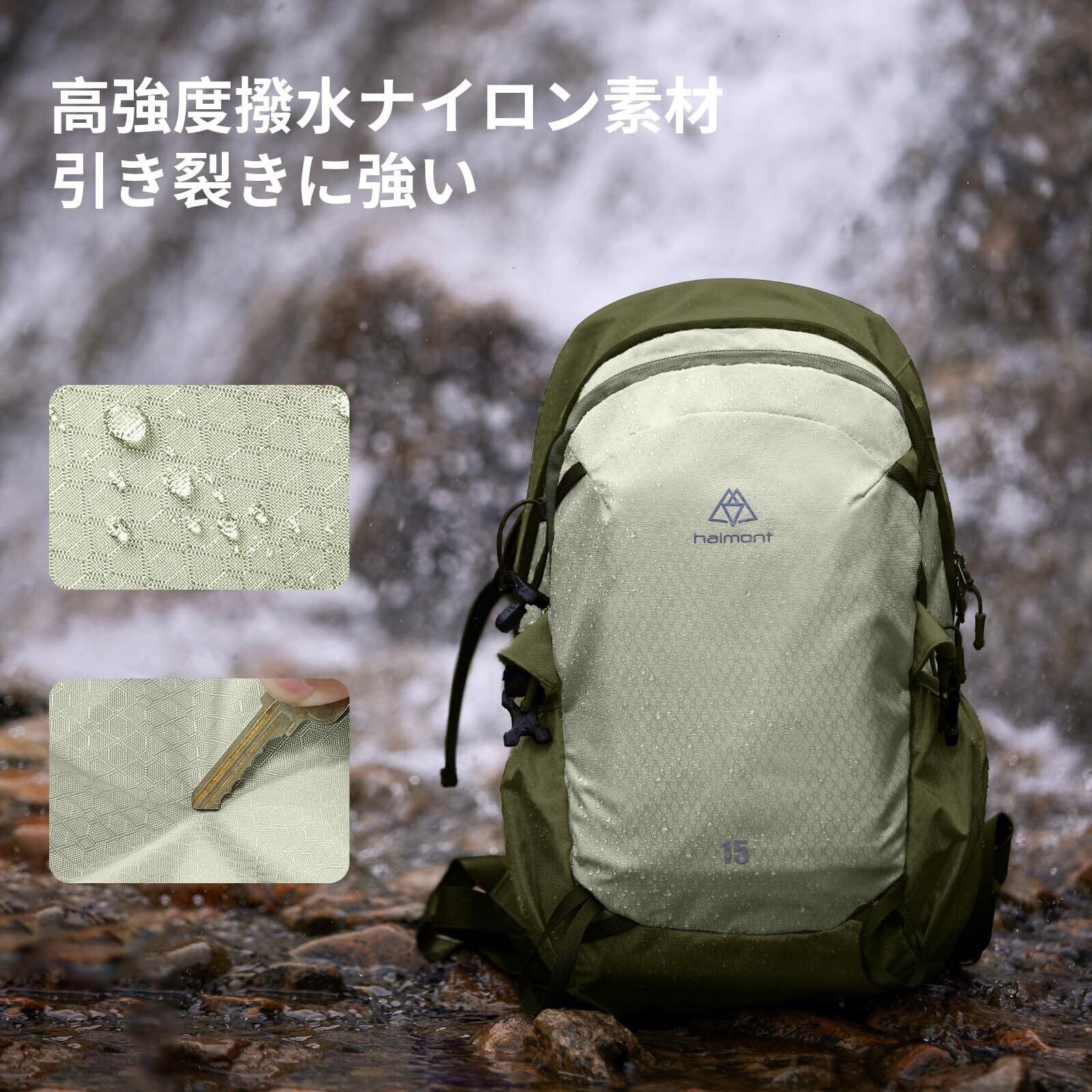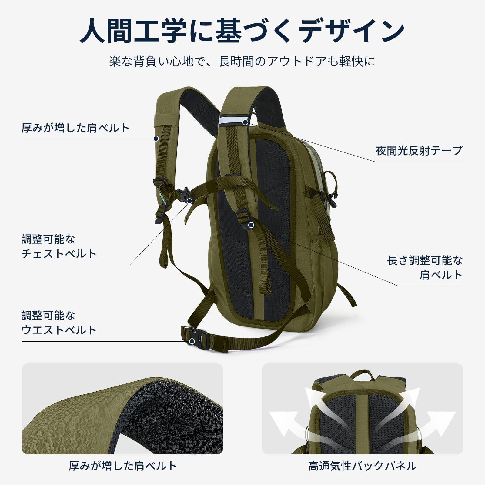 「軽量デザインと撥水加工」 540gの超軽量設計で、登山時の負担を軽減します。登山バッグとして不可欠な防水機能を備えており、このリュックは IPX4の撥水処理を施しており、山登り中の小雨、葉の露、湿気にも簡単に対応でき、中の物が濡れる心配がありません