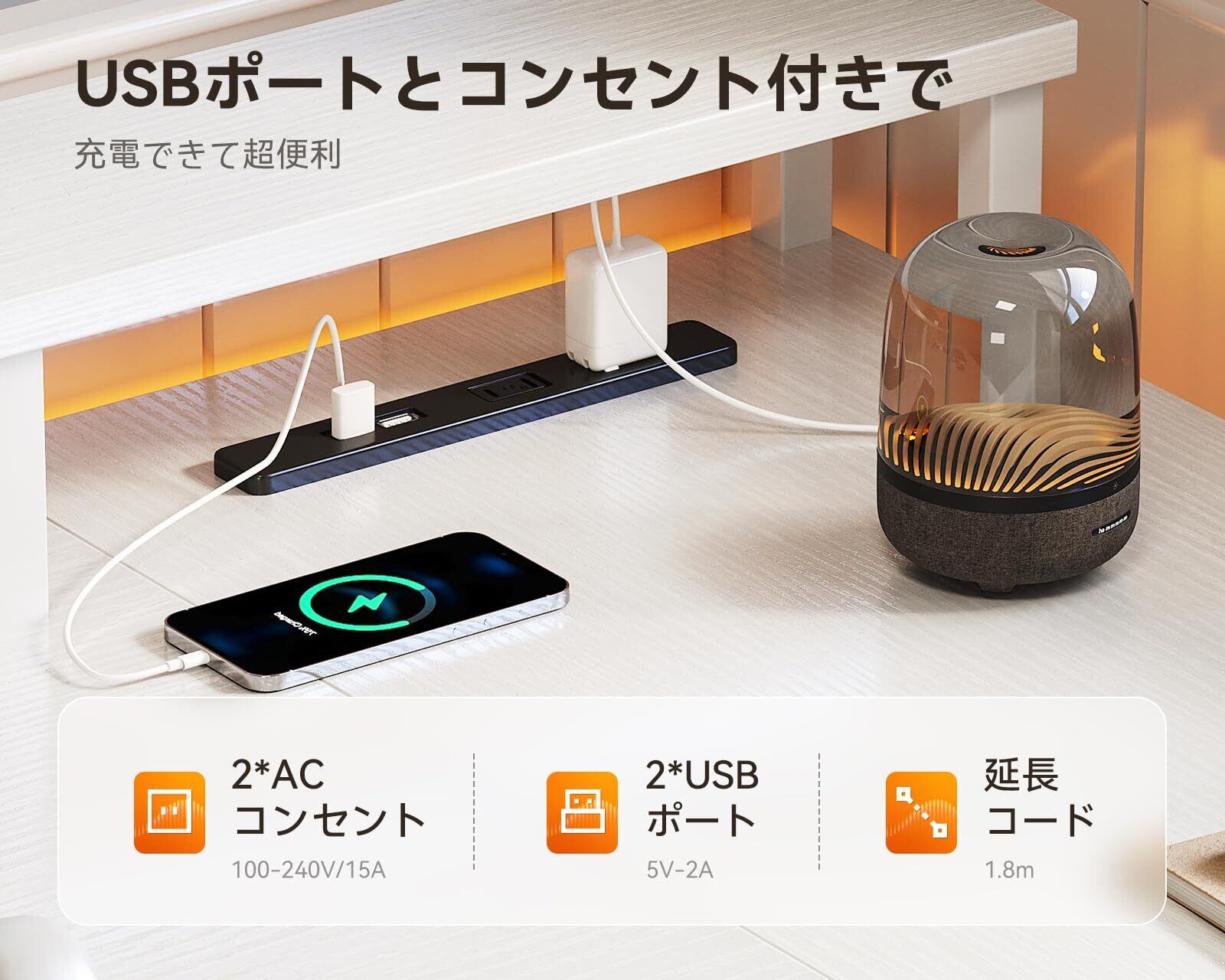 【コンセント付きデスク・ゲームと仕事両立】パソコンデスクとしてはもちろん、ゲーミングデスクとしても使用できるおしゃれなL字デスク。机には、2つのACコンセントとUSB ポート付きで、パソコンやスマホなどの充電ができて超便利です。また、引き出しとラックは間取りや利き手に合わせて左右付け替え可能。