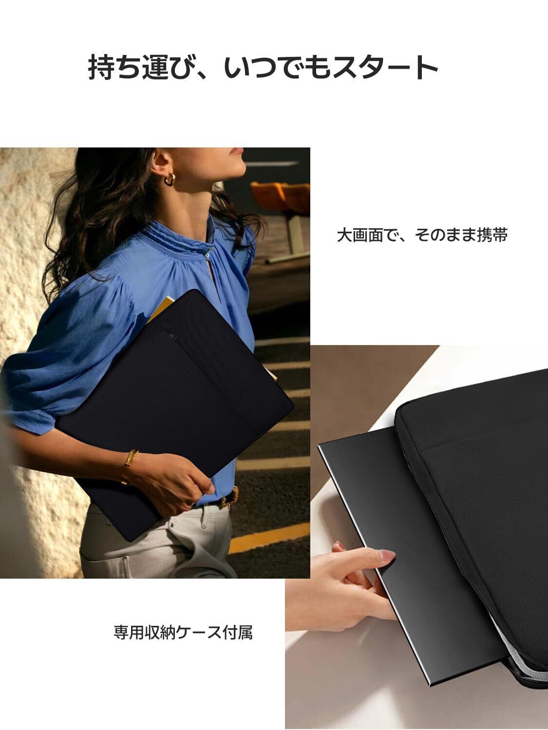 軽量化のその先へ:鞄に違和感ない、セカンドディスプレイ 約670gという軽さは、ノートPCよりも軽いレベル。専用の撥水ケースに収めてバッグに入れれば、それだけで持ち運びが可能になります。「モニターを持ち歩く」という概念を、日常的な行為に変えます。