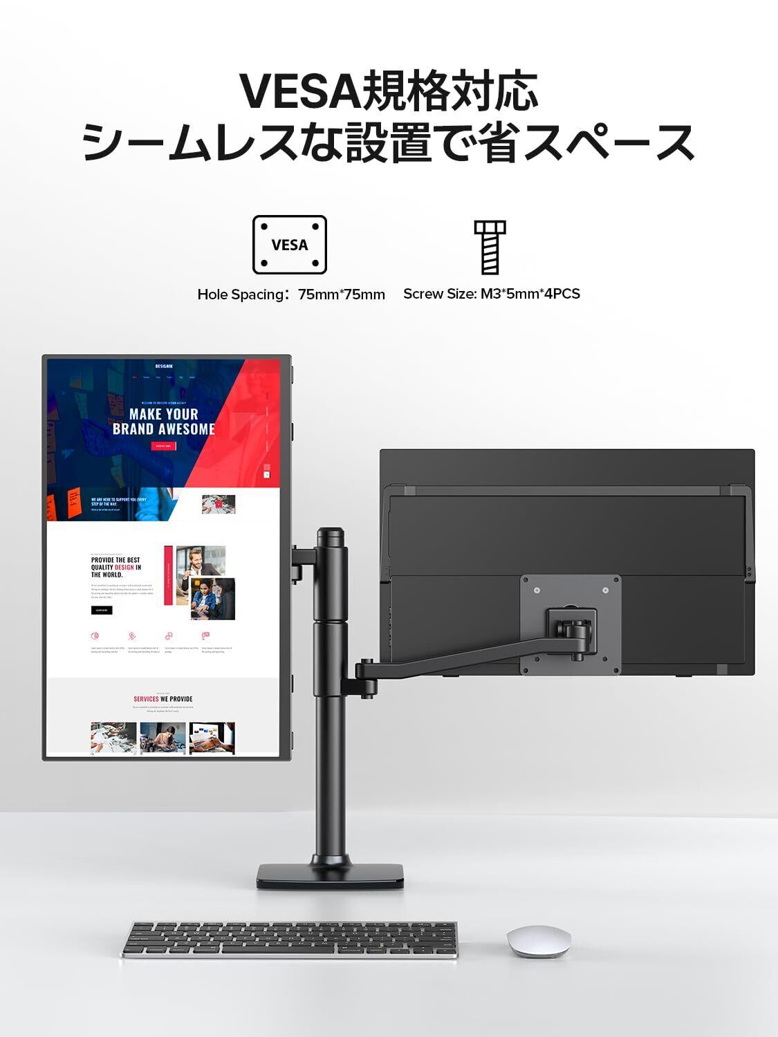 ✨ スタイルを選ばない設置:デスクを自分らしく彩る 内蔵スタンドで0~180度の調整が可能。ディスプレイを縦向きに設置すれば、コード編集や文書作業がはかどり、VESAマウントに対応しているので、モニターアームに取り付ければ、デスクスペースを広々と使うことができます。