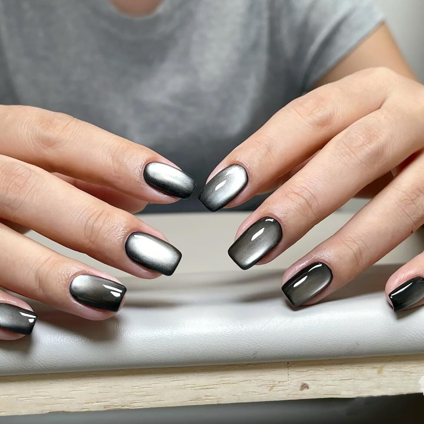 LUYING ネイルチップショート 3D爪 ネイルプレス24枚入 繰り返し使える 結婚式ネイルチップ かわいい ネイルチップ 人気 手作りカラーネイル キャッツアイネイル花嫁ネイル 光沢 レディース ギフト (ブラック) 簡単に貼る 耐久 便利 オフィス 個性的 かっこいい