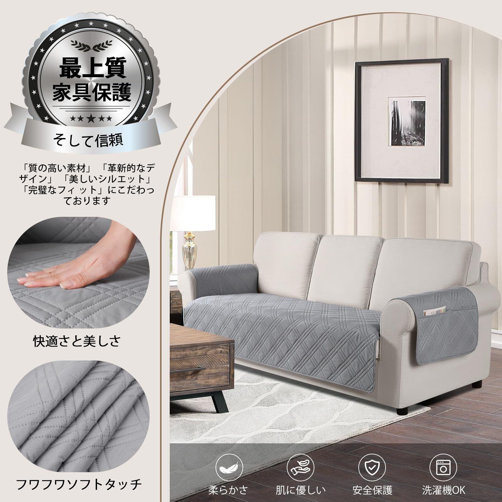 【家具保護&お手入れ簡単】TAOCOCO 防水 ソファカバーは家具をこぼれ、ほこり、日常の摩耗や損傷などの偶発的な汚れから保護するだけでなく、お手入れも非常に簡単で、多くの手間を省きます。 (注: 100% 防水ではありません。水は周りの縫い目から浸透する可能性がありますから、汚れてから5分以内に清潔することをお勧めします。) 手洗いまたは洗濯機で洗えます。摂氏約 30 度で洗います。中性洗剤をお勧めします。 漂白しないでください、アイロンをかけないでください