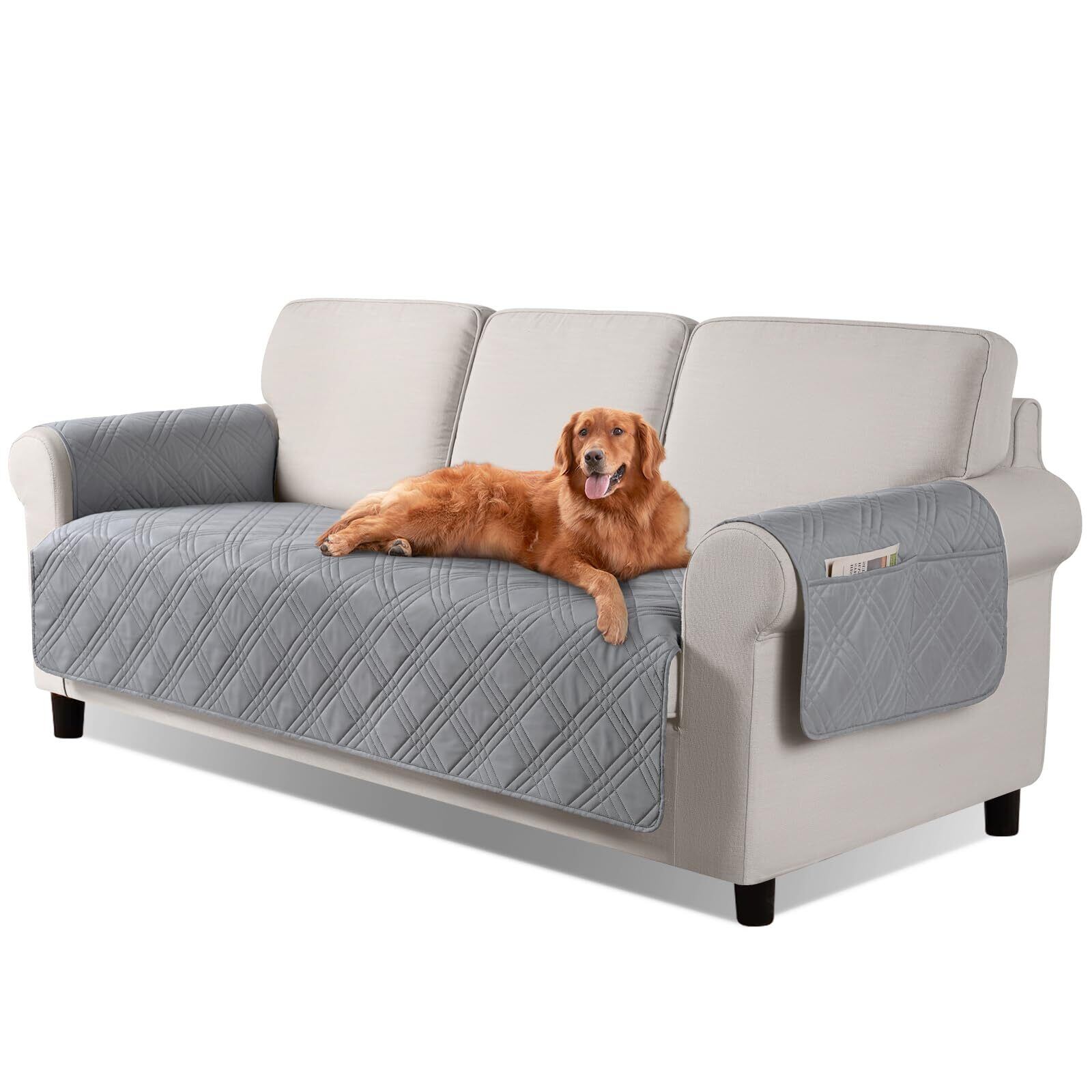 TAOCOCO ソファカバー 防水撥水 背もたれなし ソファーシート 犬猫対策 毛髪不粘着 滑り止め 1人2人3人掛け 肘付き 替えソファカバー 防塵 汚れ防止 傷防止 爪とぎ防止 マルチカバー 四季適用 撥水加工 丸洗い可能 (ライトグレー色, 3人掛けPlus)