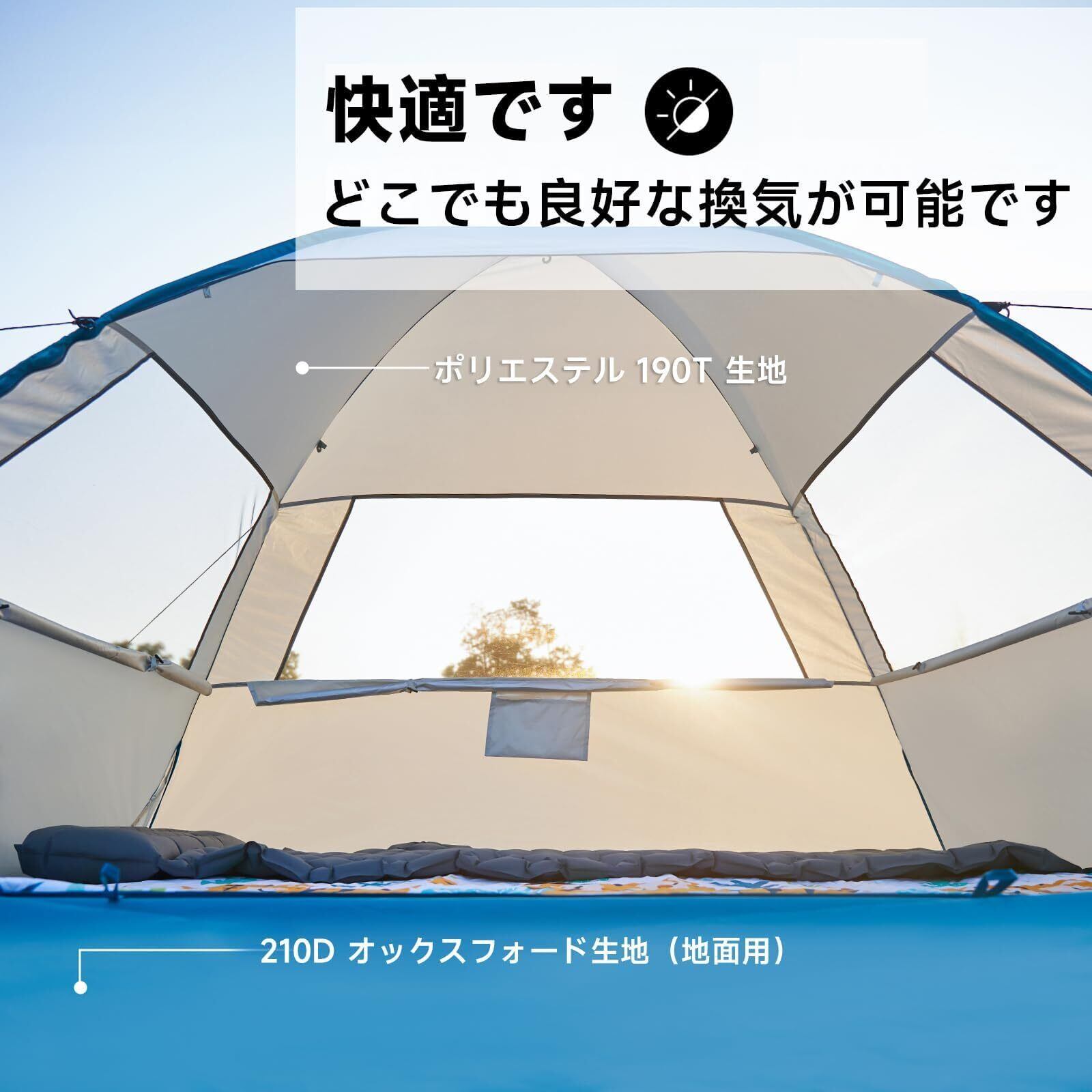 【多様なシチュエーションでの使用】当社の瞬時テントはビーチだけでなく、幅広いアウトドア活動に最適です!公園、バックヤード、釣り、子供の遊び場、スポーツイベントなど、どこでもこのテントはあなたの第一選択です。ピクニック、ハイキング、誕生日パーティー、音楽フェスティバル、園遊会、グループでの寝泊りなど、あらゆるアウトドアアドベンチャーに最適な多目的シェルターです。