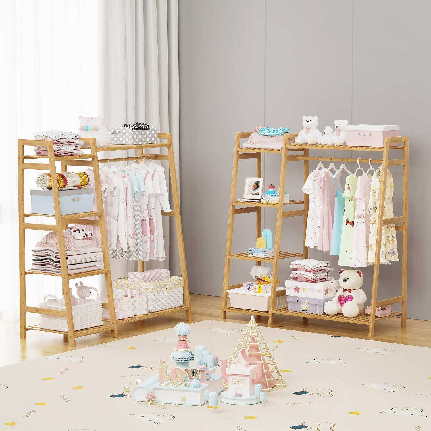 ハンガーラック キッズ 子供用 多段式 衣類収納 低め 竹製 かわいい 収納力 ナチュラル (ミディアム)