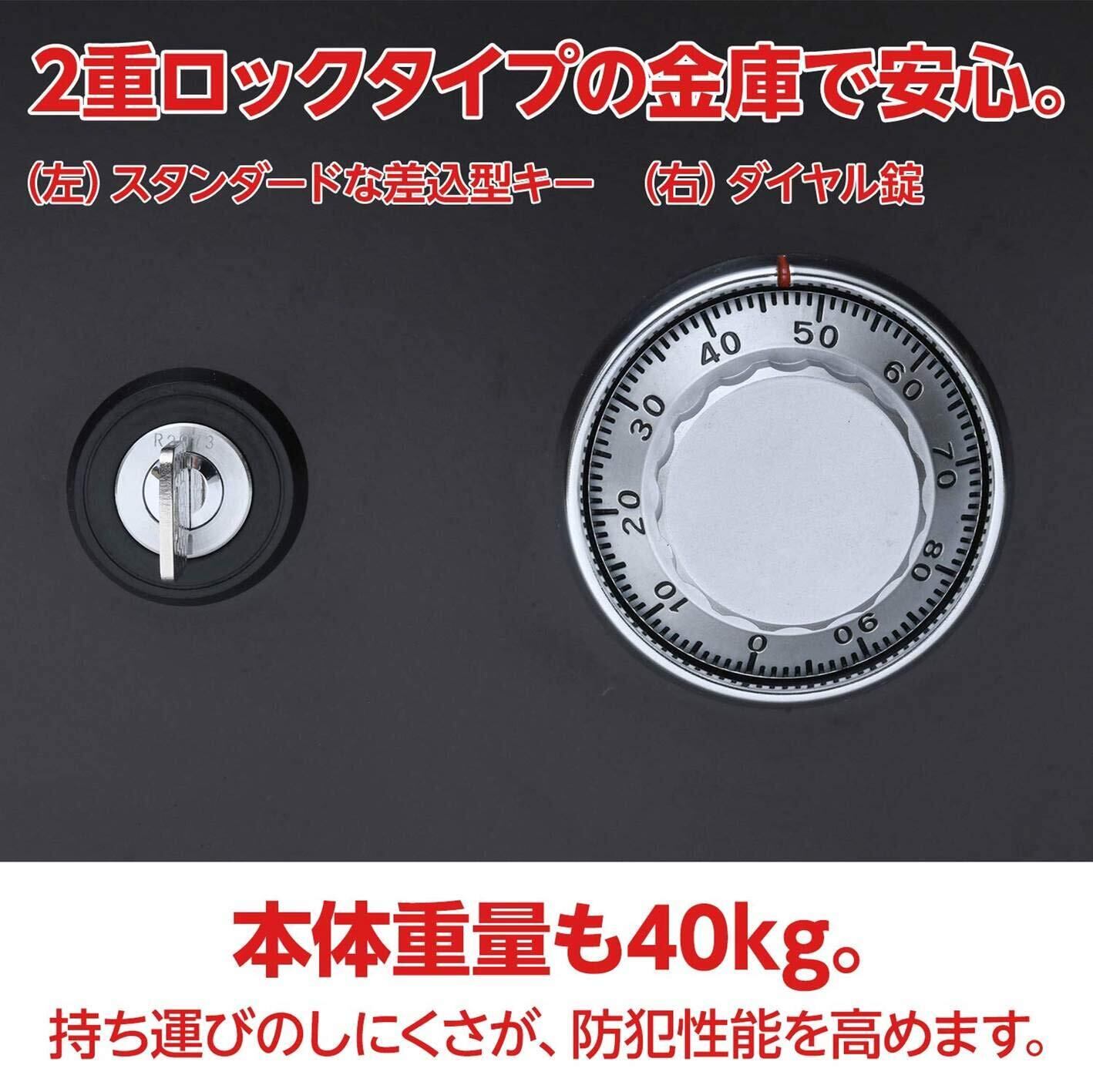●ダイヤル錠とリバーシブル錠の二重ロック機構●家庭用耐火金庫に適したコンパクトサイズ●庫内はB5判の書類が収納できるトレー1段付き●JIS一般紙用1時間標準加熱試験合格品●安心の日本製●内寸:幅28×奥行25.6×高さ21.4cm