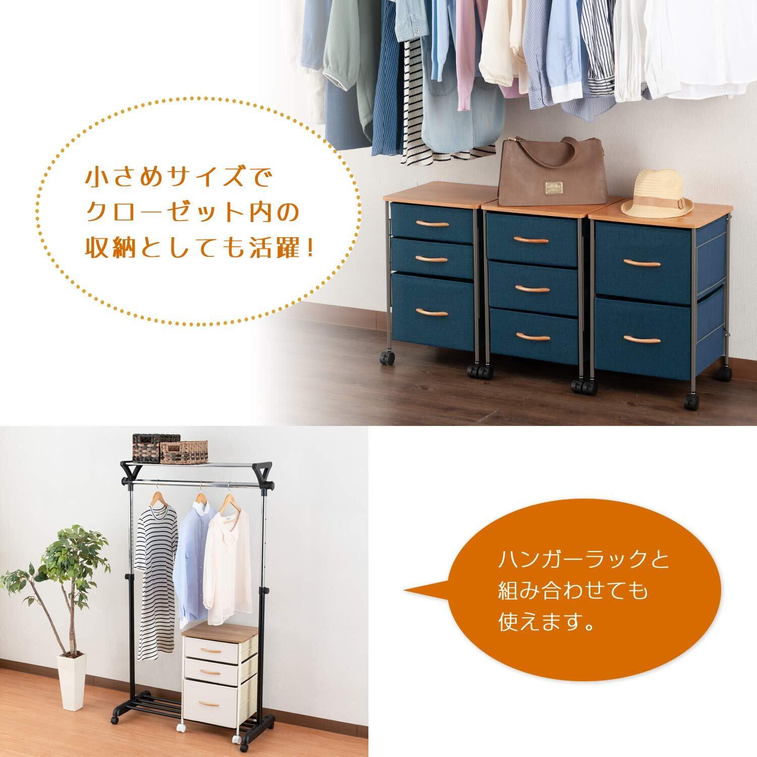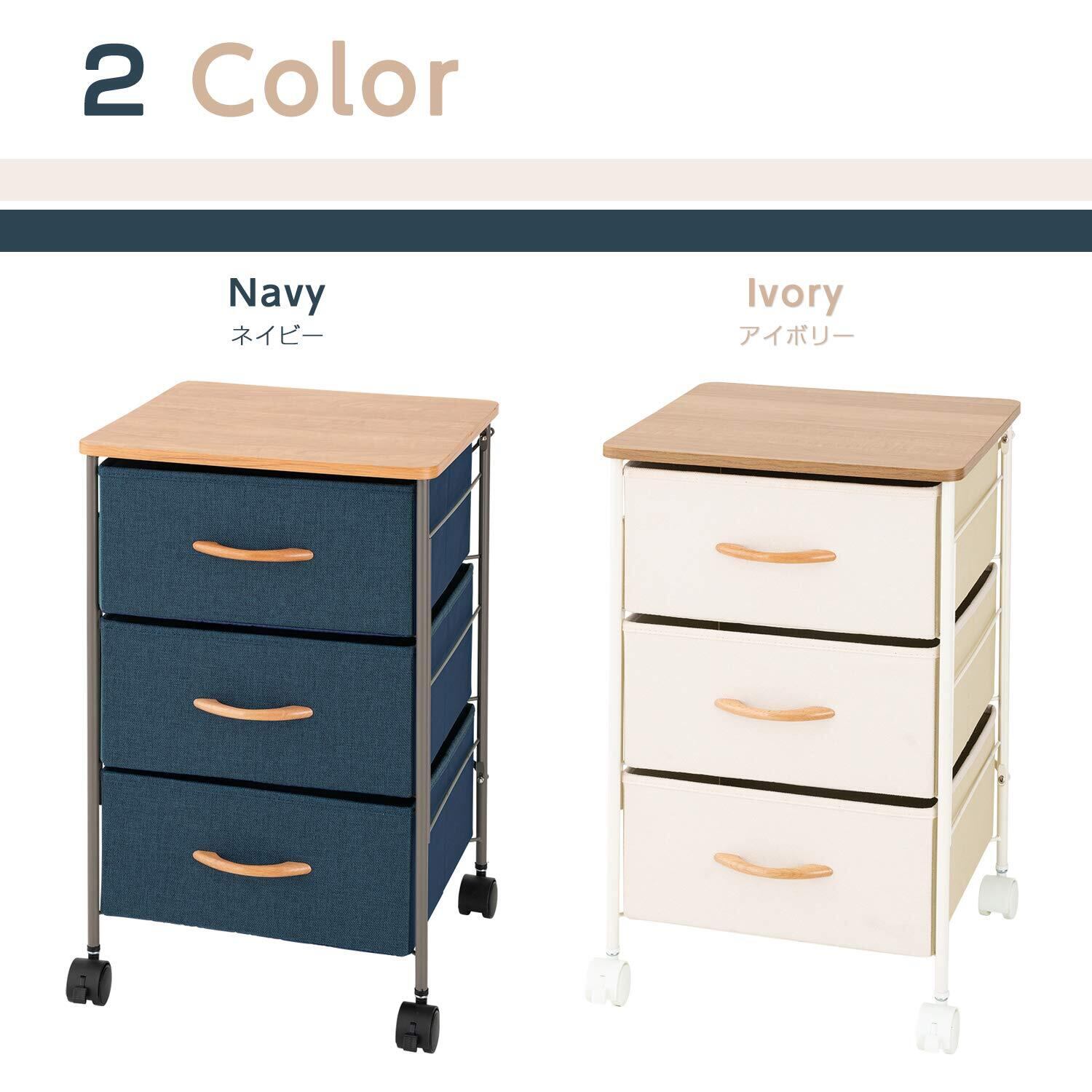 ドウシシャ 布製収納ボックス コンパクトチェスト 幅40 3段 白 軽くて便利 キャスター付き 木製天板 取っ手付き 幅38.5×奥行36.5×高さ60.5cm 通気性の良い不織布素材 深型ボックス アイボリー 子供部屋 ソファ横 CNC40-3IV
