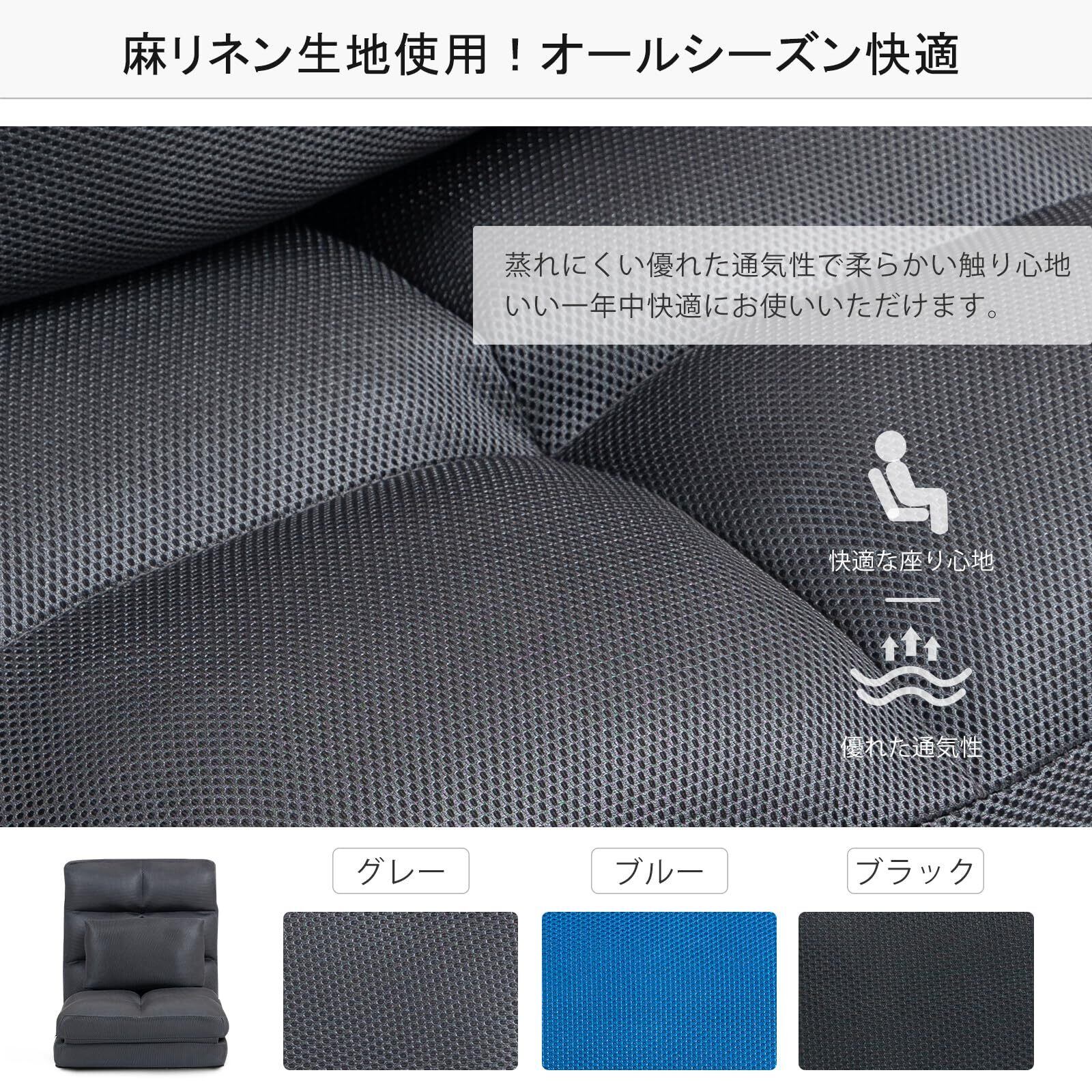 【快適な座椅子】座面にふわふわ二層のクッションで、贅沢な座り心地を差し上げます。ダブルクッションを開いたら座面サイズはさらに大きくし、どんなわがままの姿勢でも受け止めます。通気性抜群の亜麻素材には、長時間の使用でもムレにくい。ハイバック背もたれも優しく体を支えてくれます。
