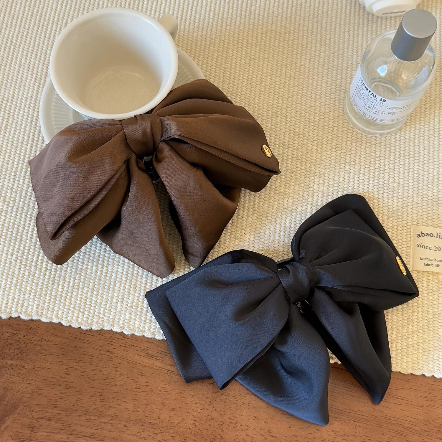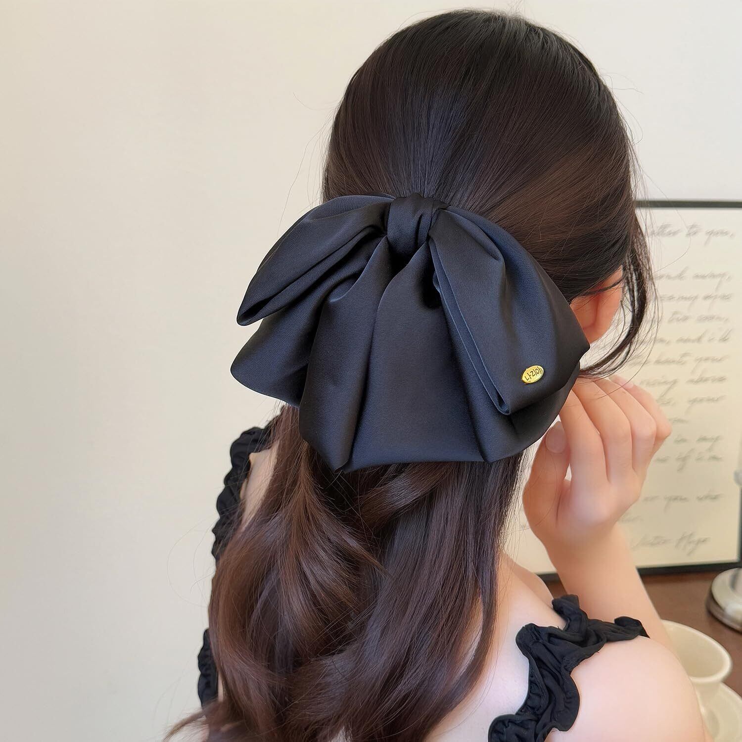 エレガント ヘアクリップ 大きめ シルクリボン 韓国風 上品 おしゃれ レディース 大人 上品 ボリューム感 ヘアアクセサリー 結婚式 入学式 卒業式 誕生日 お祝い 黒