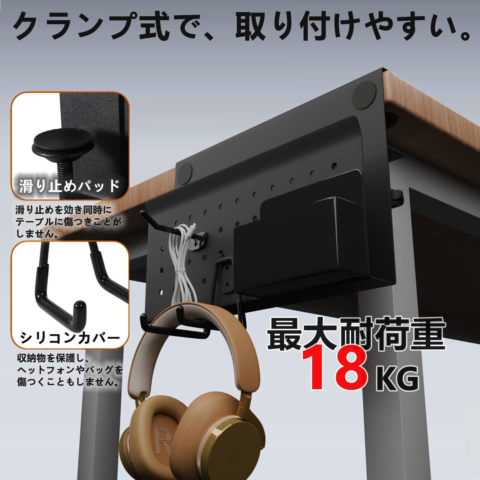 Labato デスクサイド 収納ラック 新登場 有孔ボード テーブルサイドポケット イヤホンスタンド 机の下 フック4個付属 パソコンラック ペンホルダー付属 デスク収納 ノートpc スタンド プレゼント オフェス収納 プレゼント(ブラック)
