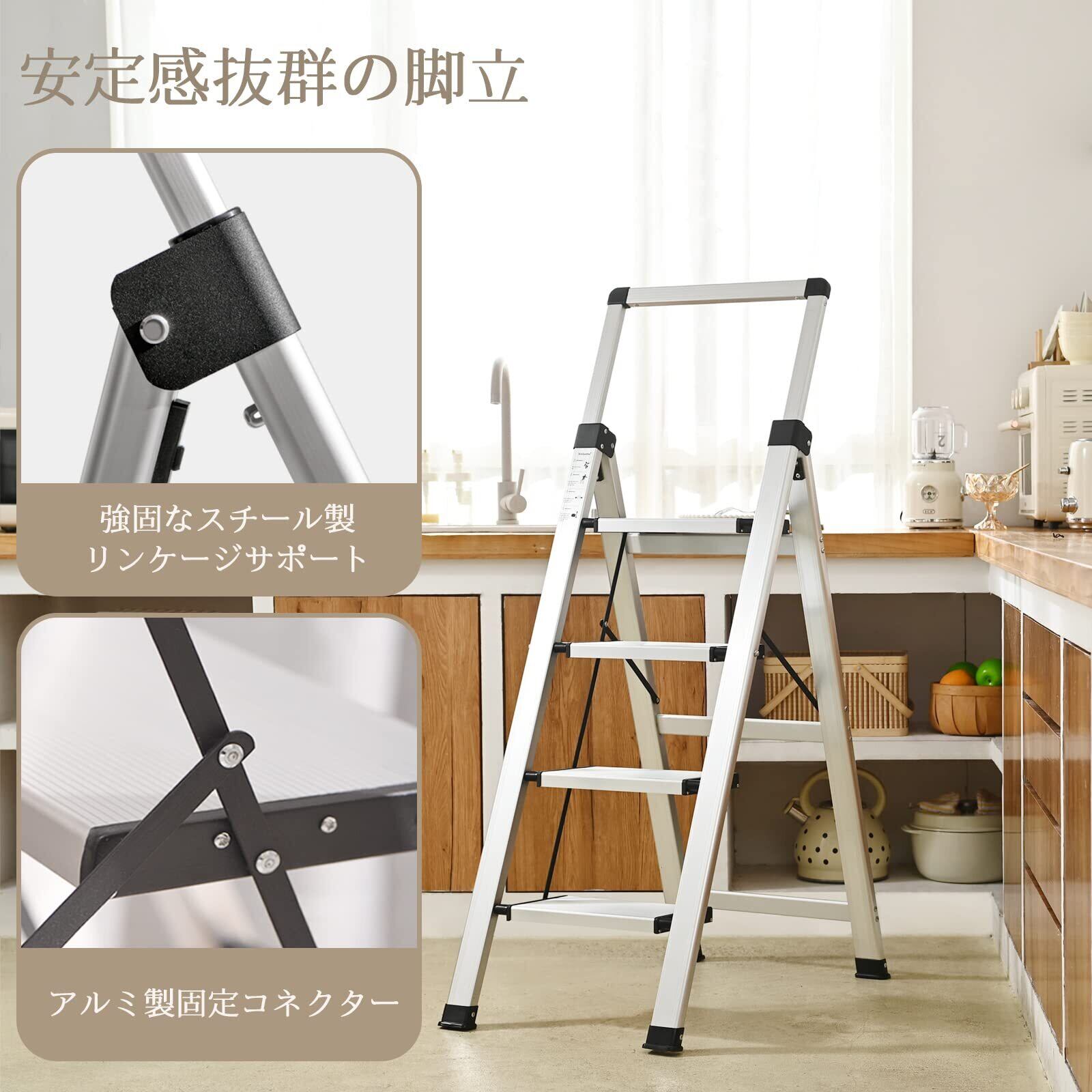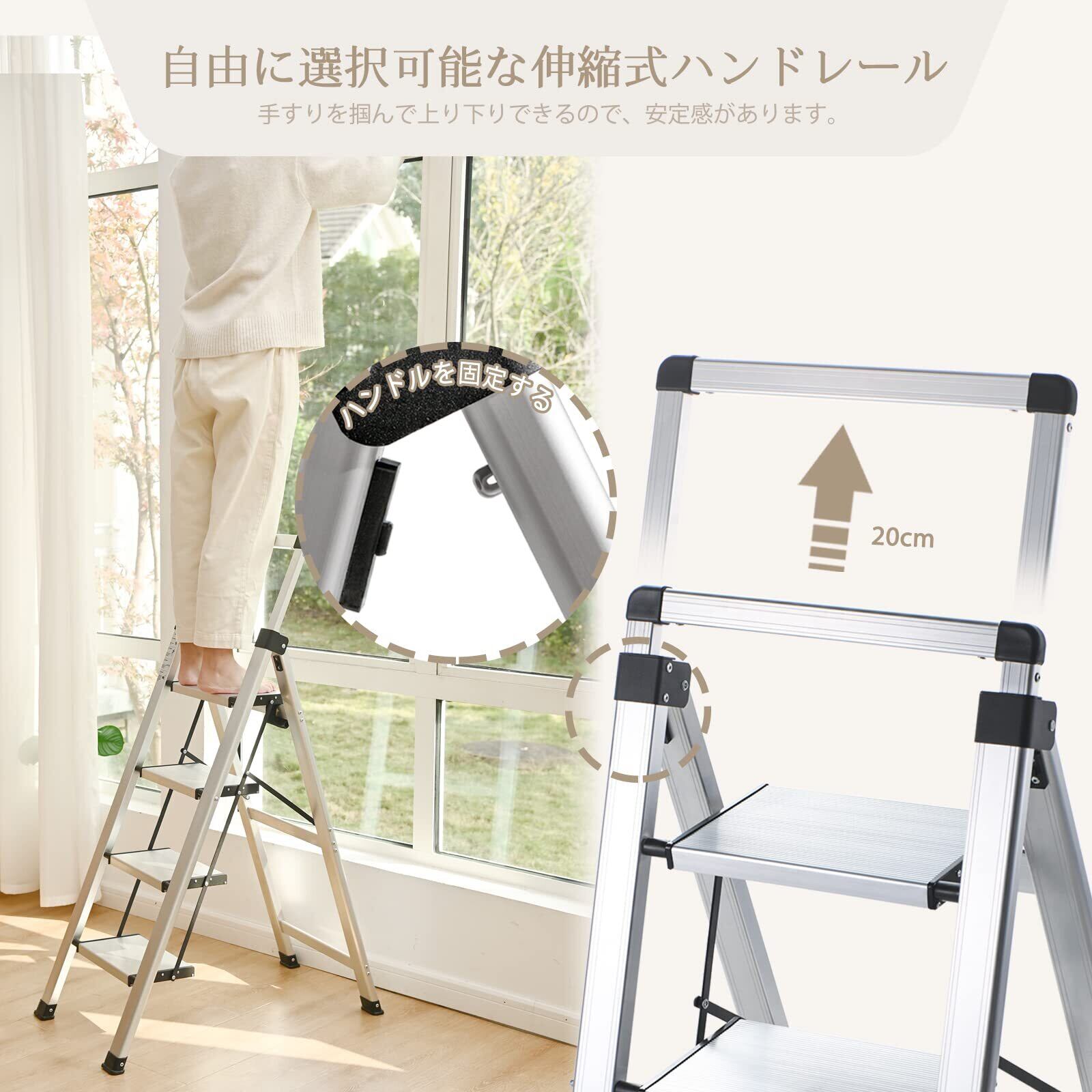 XinSunho 脚立 4段 おしゃれ 踏み台 折りたたみ アルミ ふみだい 軽量 コンパクト はしご 耐荷重150KG トレー付き 洗車 室内 引っ越し 大掃除 (シルバー, 4段)