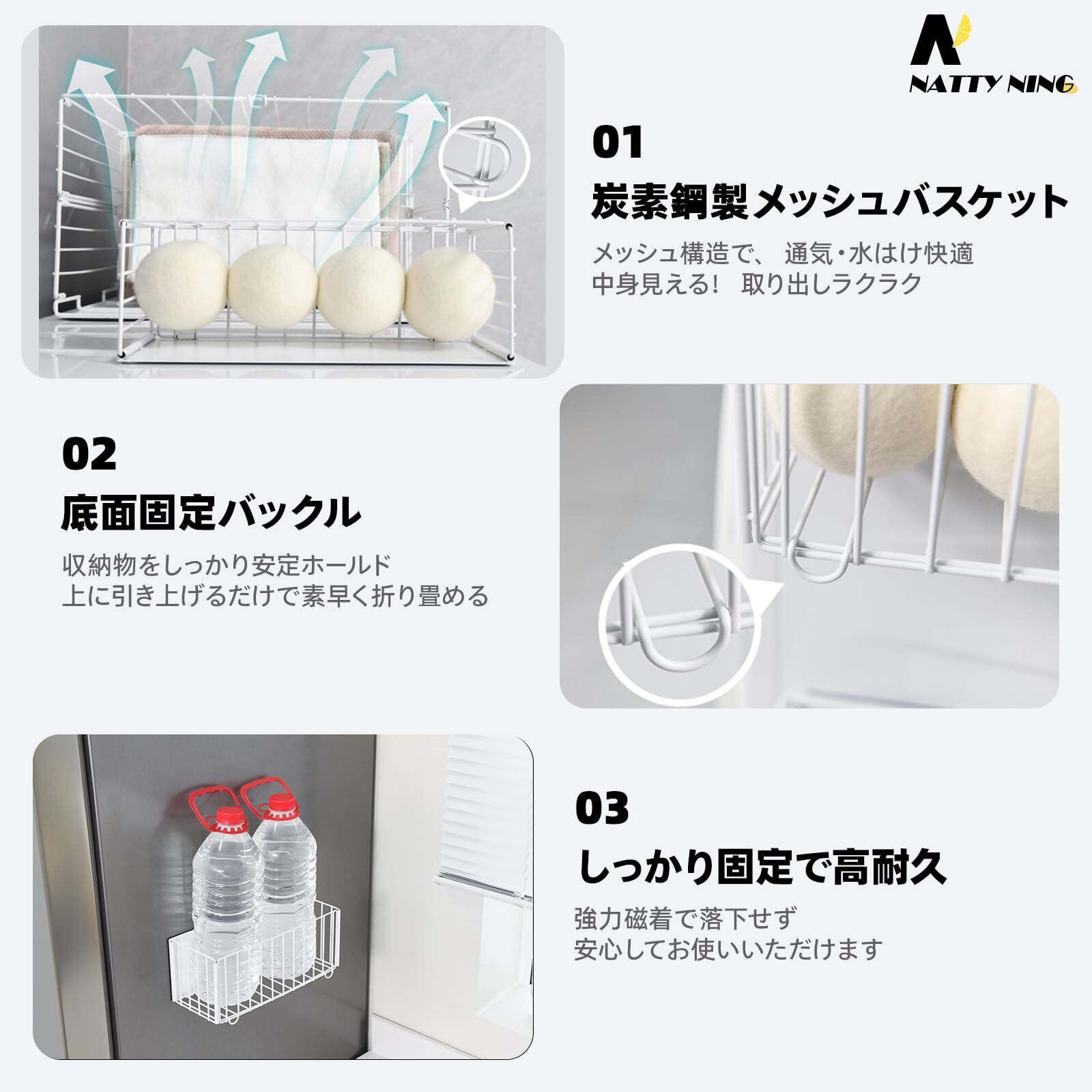 NATTY NING取り付け簡単 省スペース設計(幅28×奥行11×高さ11cm) キッチン/浴室/洗面所/洗濯機横/冷蔵庫サイド対応 炭素鋼製 壁傷つけず メッシュ構造 水切り便利 スリム収納 ホワイト 1個入
