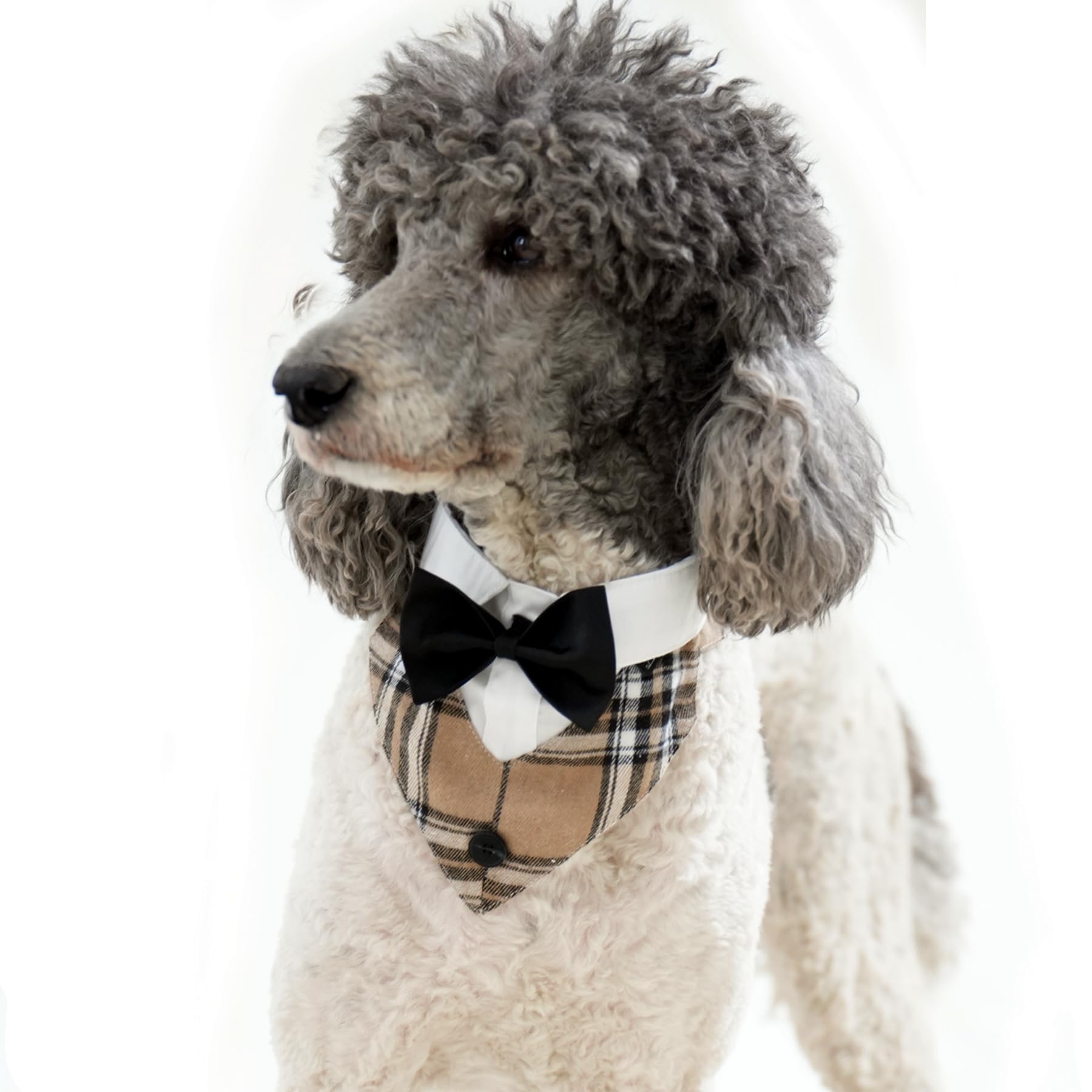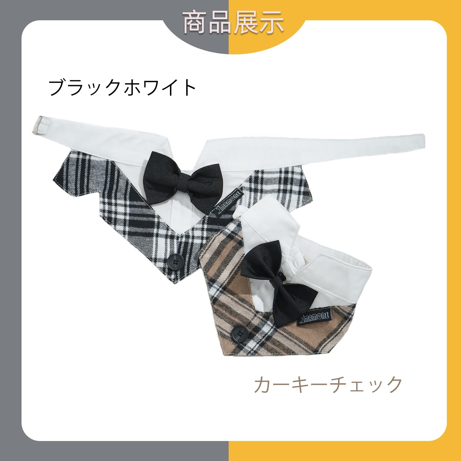 犬 バンダナ タキシード 襟 フォーマル ドッグ スカーフ カラー 蝶ネクタイ リボン 調整可 小型 中型 大型犬 猫 結婚式 誕生日 コスプレ 写真 (カーキー格Tux L)