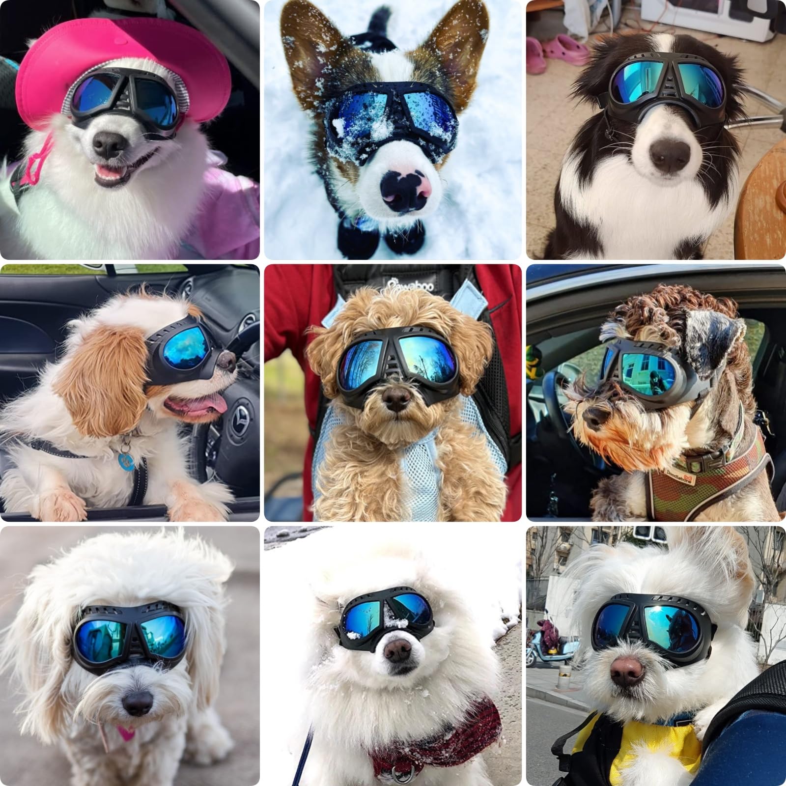 目の保護:紫外線や埃を心配しなくていいです。ペットと一緒に屋外で楽しく遊んでください。特に車の窓から頭を出すのが好きなワンちゃんに適しています。