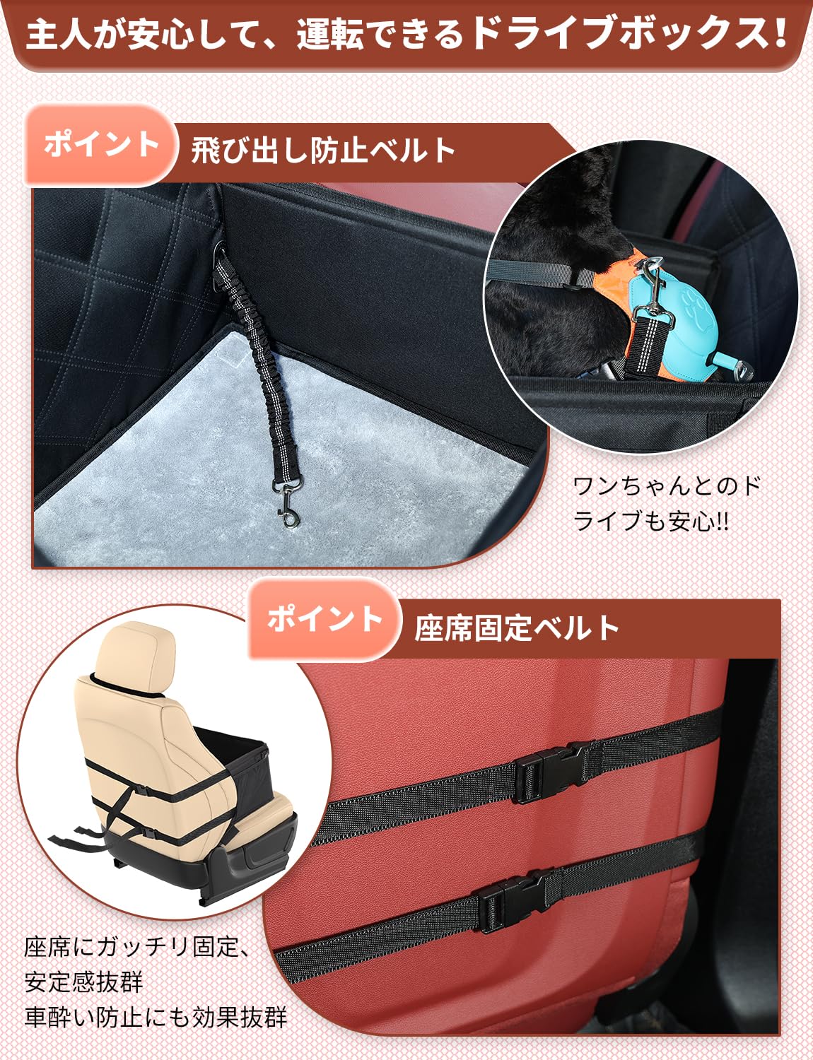 KYG ドライブボックス シートカバー 2WAY ドライブペット 型崩れしない 飛び出し防止リード付き 中敷き付き 折り畳み可能 滑り止め 防水 助手席 後部座席 小型犬用