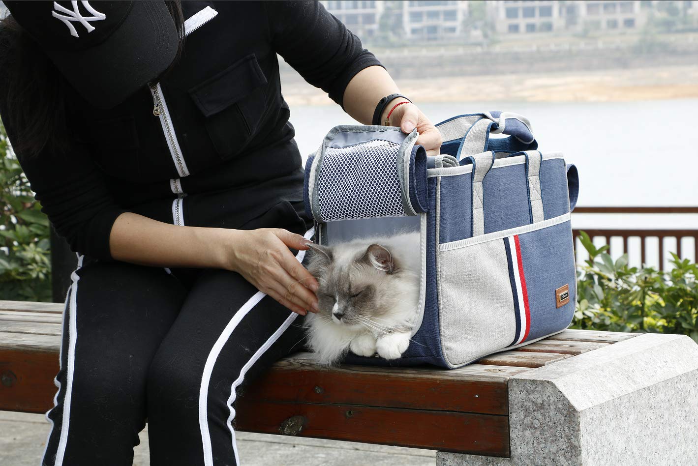 丈夫さ&防水性能:耐摩耗性を持つ丈夫な900D防水オックスフォード生地と特殊メッシュ素材を使用しており、ペットの噛み付きにも安心、いたずらや事故防止のため、内側に飛び出し防止リードがついています。内部の下に取り出せるプラスチックのマットも付きます、安定性の上、形も崩れ難いです。出入りは両側にも上にもできます。