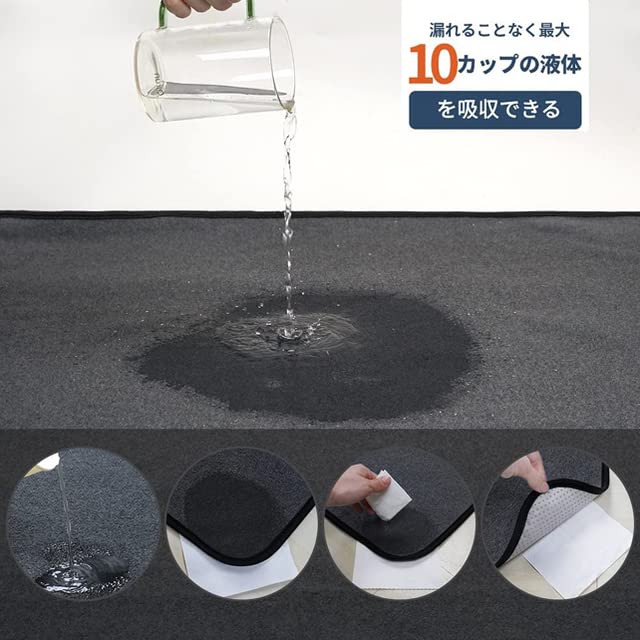 表地は子犬や老犬のケアにも最適な柔らかくて、吸水性の高いフリース生地。真ん中はポリエステルレイヤに防水コーティング。下に浸透する心配はありません。裏面はズレにくいノンスリップ仕上げ。滑りやすいフローリングでの転倒を防止します。ズレが原因の汚れから開放されます