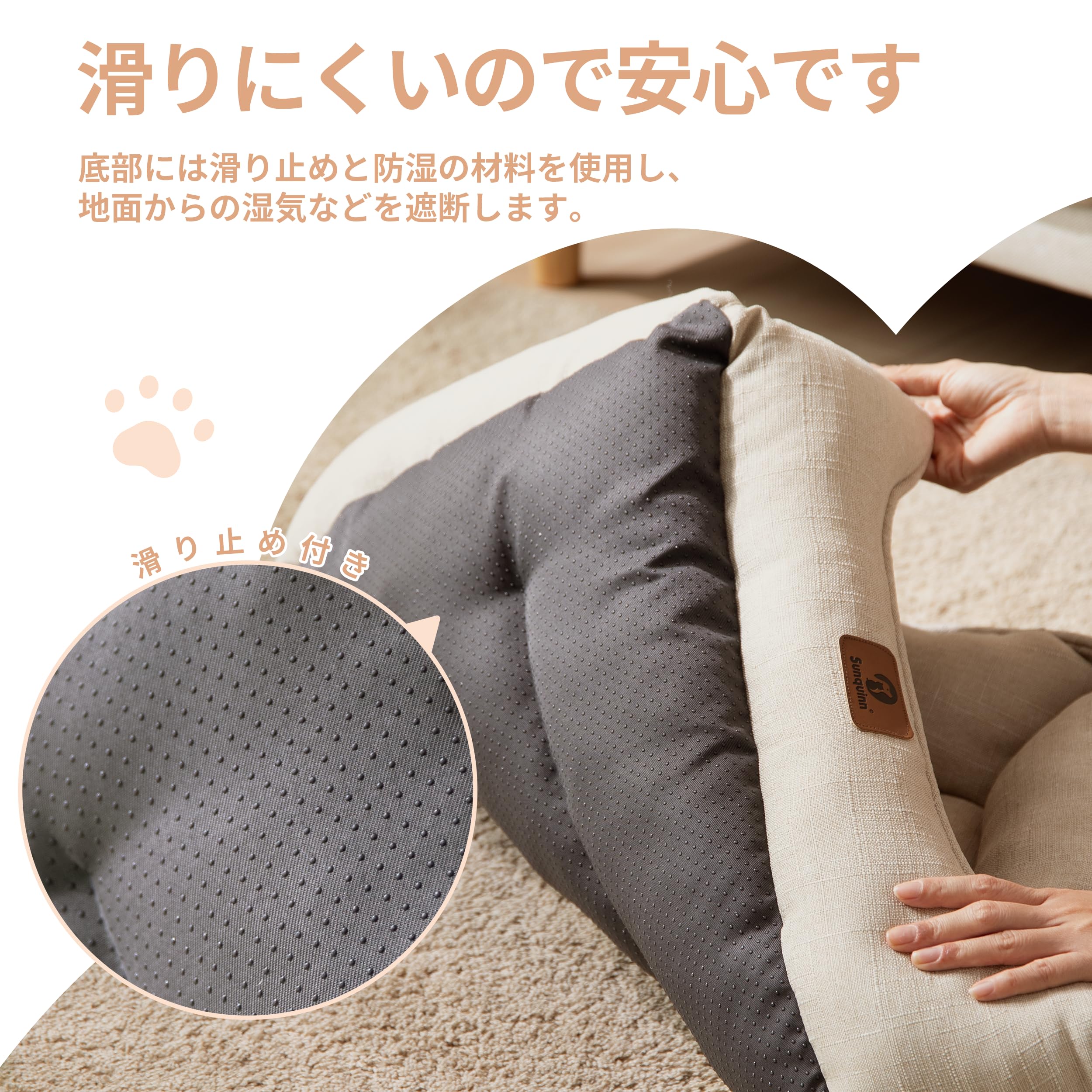 【あご乗せやすい枕付き】ベッドの周りに中綿をたっぷり入れて、頭やあごが乗せやすい枕になって、ぐっすり眠ることができます。【滑り止め付き】底部には点状のシリコンが付いており、ペットが飛び込む時やジャンプアウトする時も動かないようになっています。愛犬や愛猫に安全なホームを提供します。
