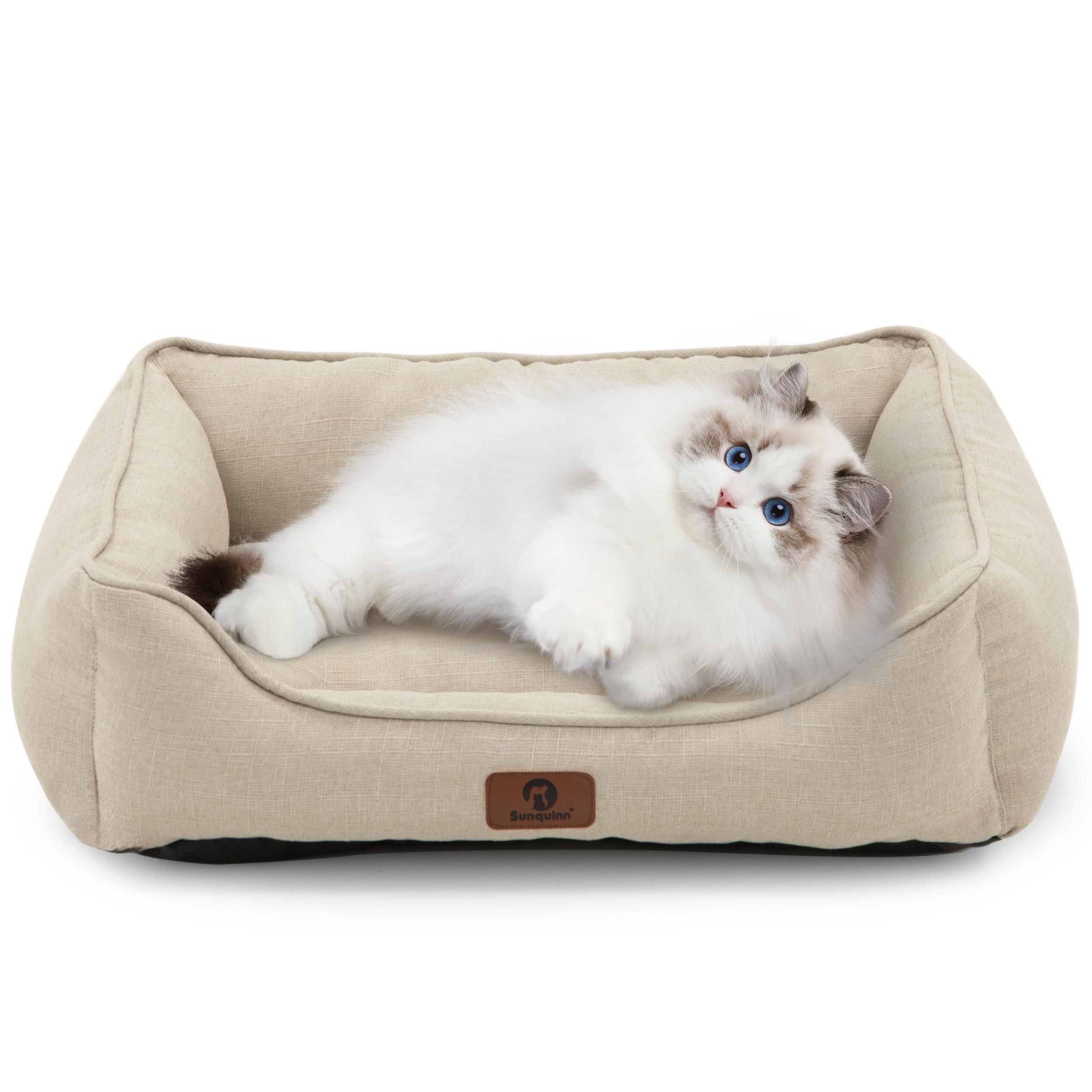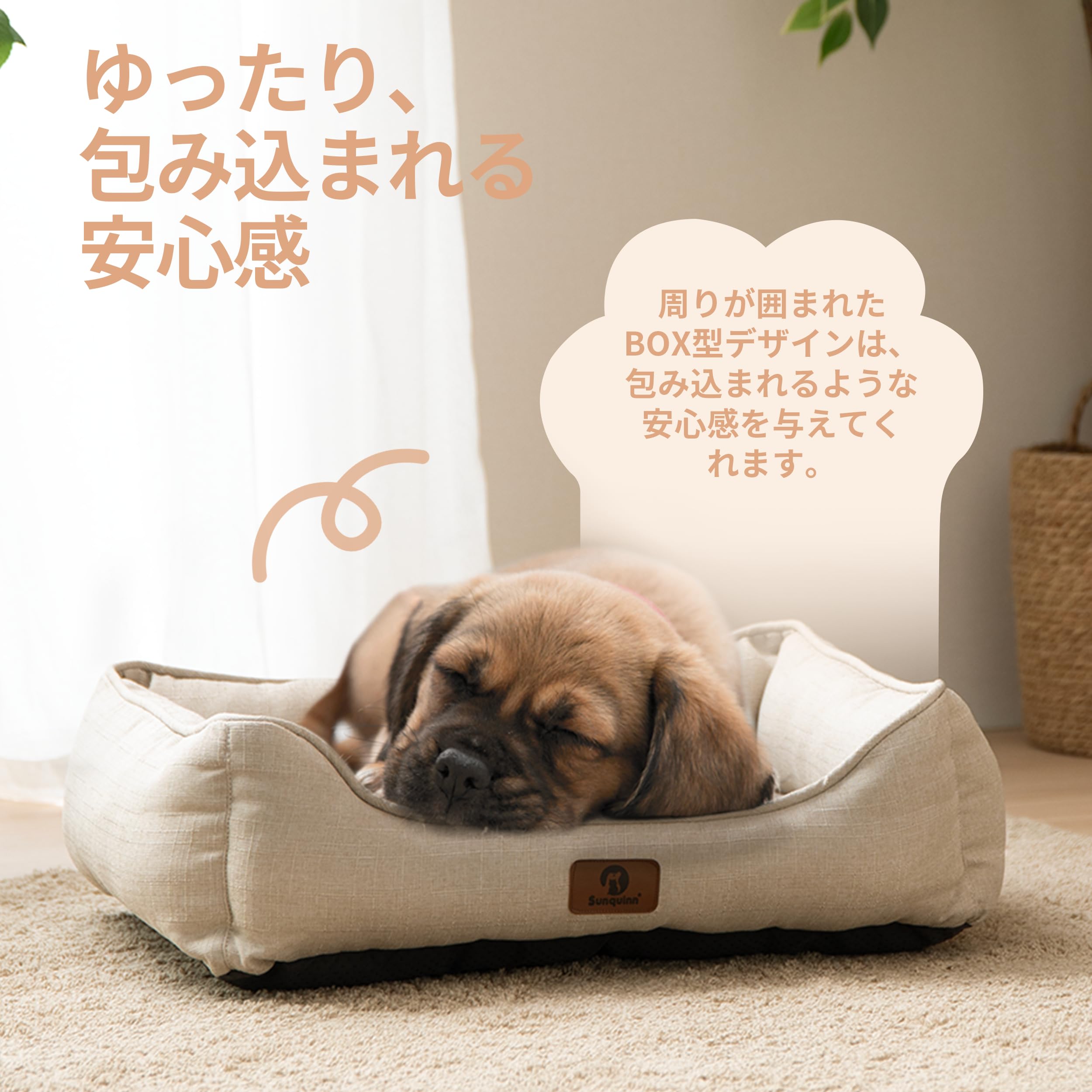 猫 犬 ベッド 猫ベッド 犬用 ペットベッド 洗える 滑り止め 通気性 オールシーズン クッション スクエア型(外寸50Lx40Wx14Hcm ベージュ)