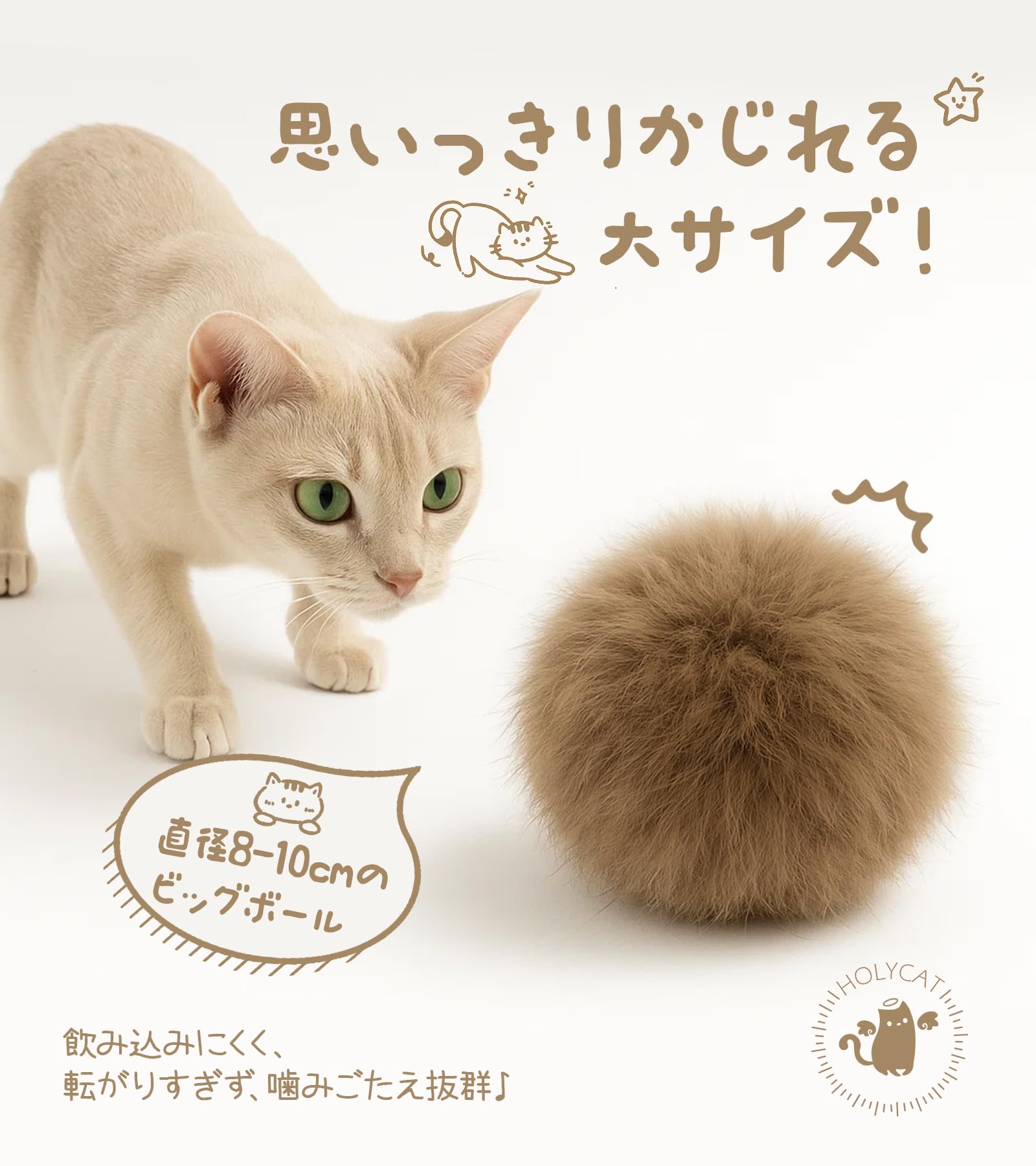 HOLYCAT 猫 おもちゃ ボール 猫のおもちゃ コロコロ 天然 無着色 天然ラビットファー毛玉 滅菌済み ふわふわ柔らか 大きめサイズ 静音設計 隙間に入りにくい 運動不足解消 ストレス軽減 豊容 嗅覚用 知育 猫遊び 子猫 成猫 高齢猫 猫用キックおもちゃ 猫 かみかみ おもちゃ