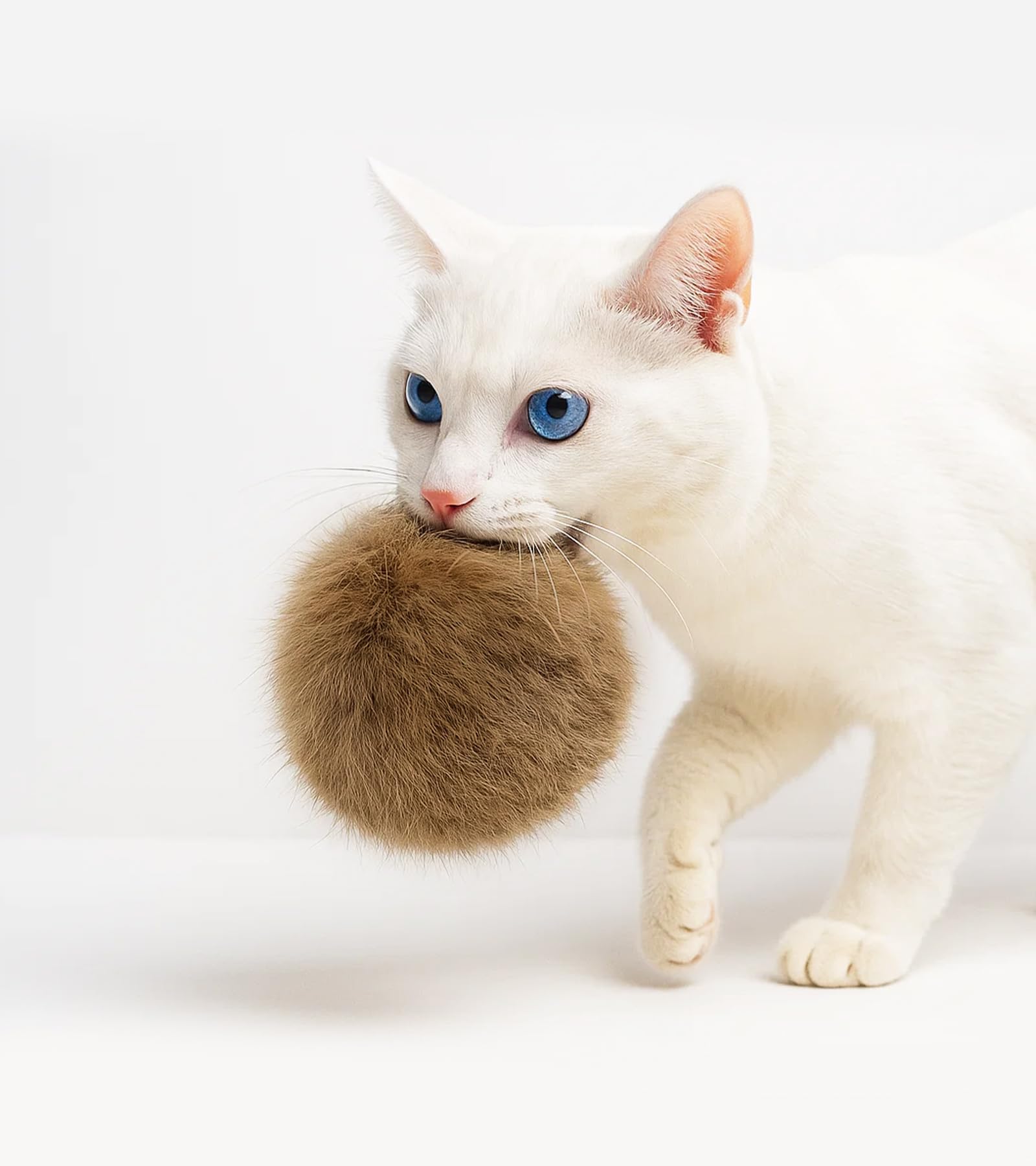【大きめサイズで狩猟本能を刺激】 ころころと転がる天然ラビットファー毛玉は、猫の狩猟本能を刺激。追いかけたり噛んだりする遊びを促し、飽きずに長く楽しめます。