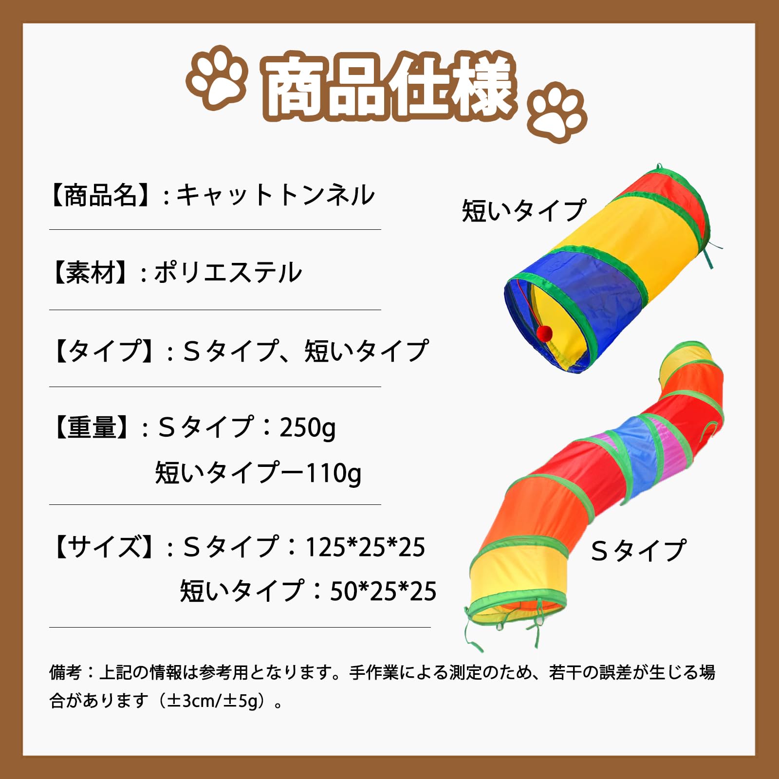TJT 猫トンネル 長い レインボー トンネル 120cm 可水洗いS形長い2穴付き 折りたたみ式 キャットトンネル 収納便利 猫の遊び場、運動不足解消、ストレス発散 (虹色 S)