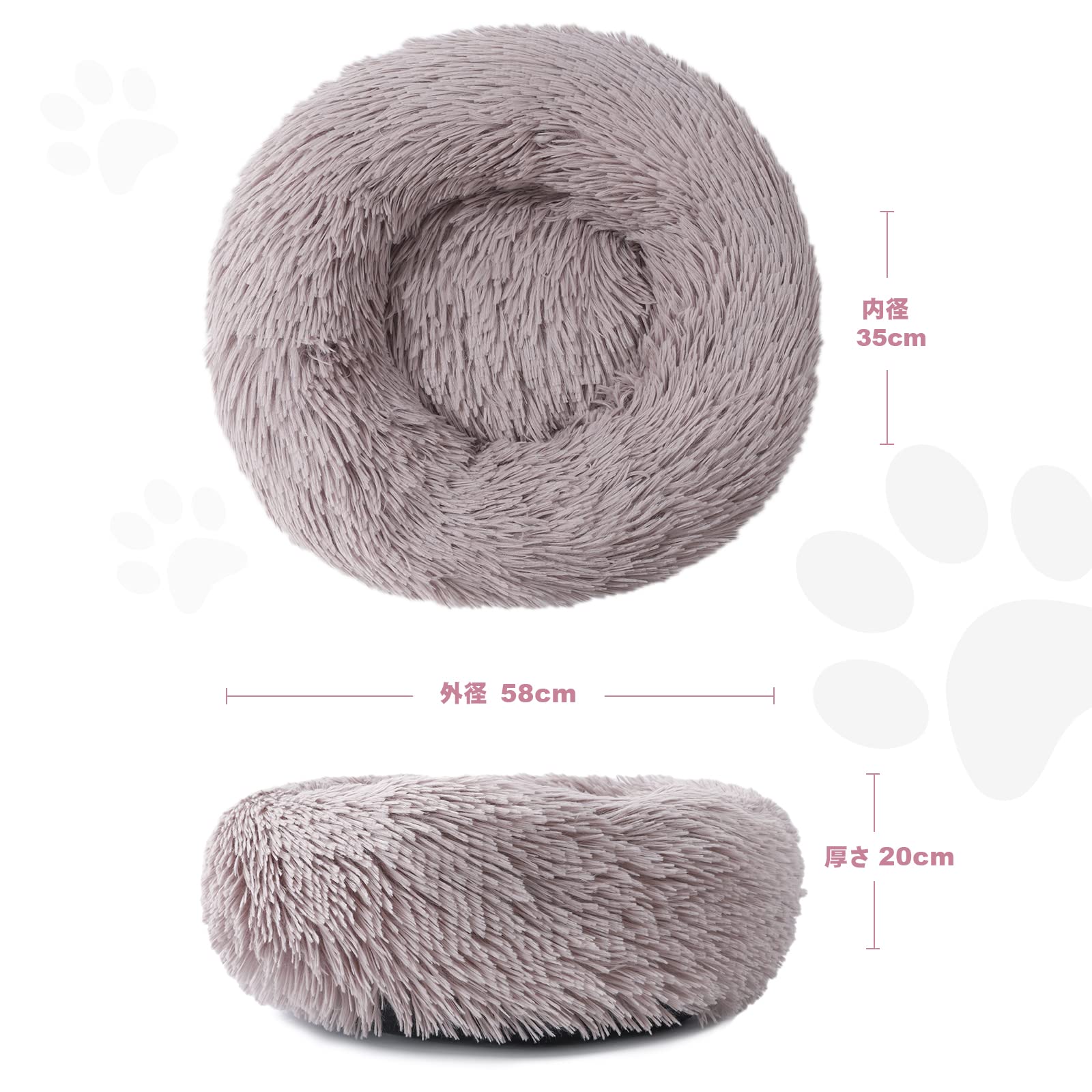 Aurako 58cm 犬ベッド 猫ベッド ふわふわ 丸型 クッション ドーナツペットベッド ぐっすり眠る 猫用 小型犬用 もこもこ 暖かい 滑り止め 防寒 寒さ対策 洗濯可能 子犬 猫用 サイズ選択可 トープ