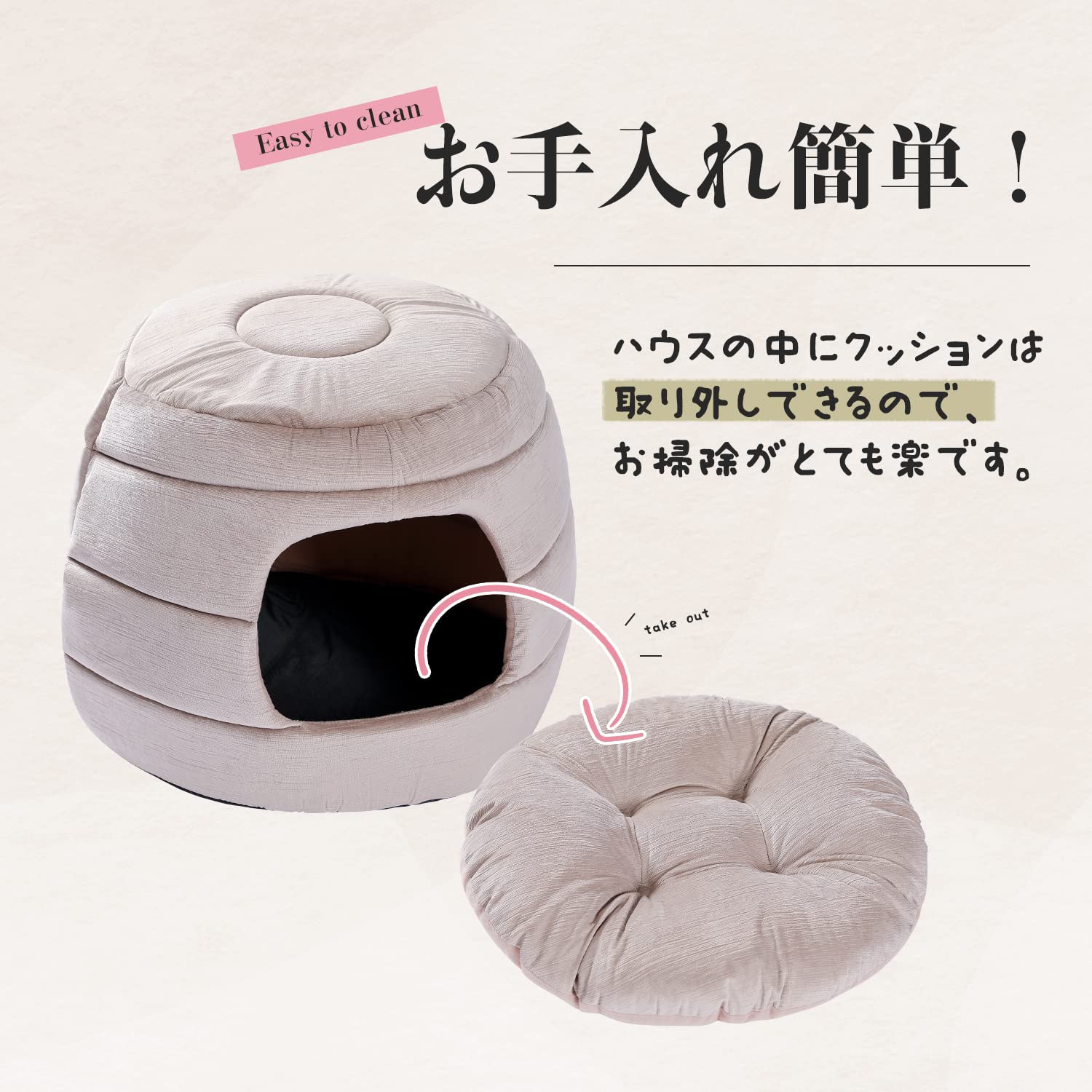 PAWZ Road 犬 ベッド ドーム 犬 ハウス 犬小屋 犬のハウス 猫ハウス 猫ベッド 室内 ペットベッド ハチの巣形 お洒落 かわいい 両用 折りたたみ 2way クッション 取り外し可能 いぬ ねこ ベージュ