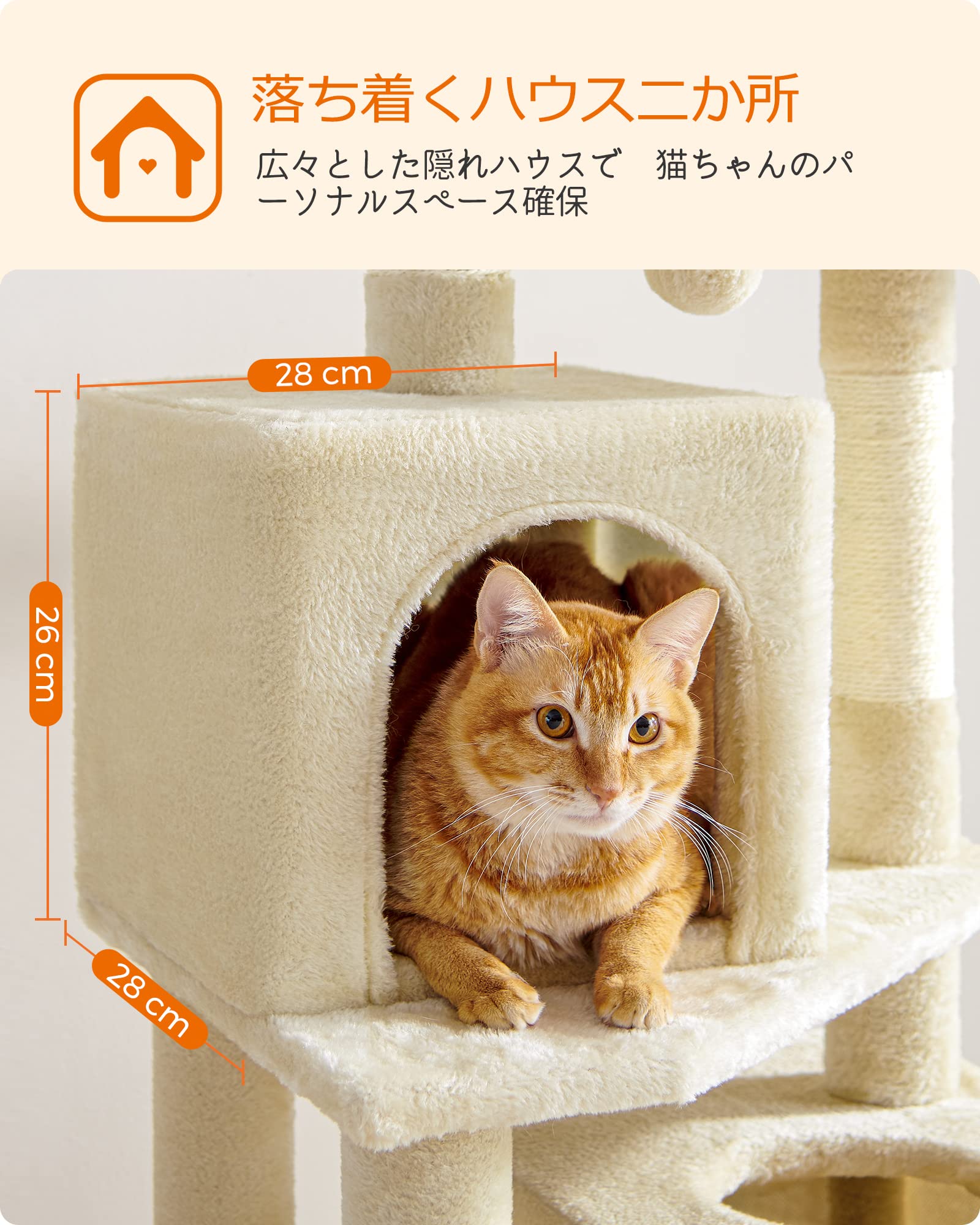 FEANDREA キャットタワー 猫タワー スリム 大型猫 多頭飼い 据え置き 省スペース ハンモック付き 爪とぎ 運動不足解消 高さ155CMベージュ PCT192M01
