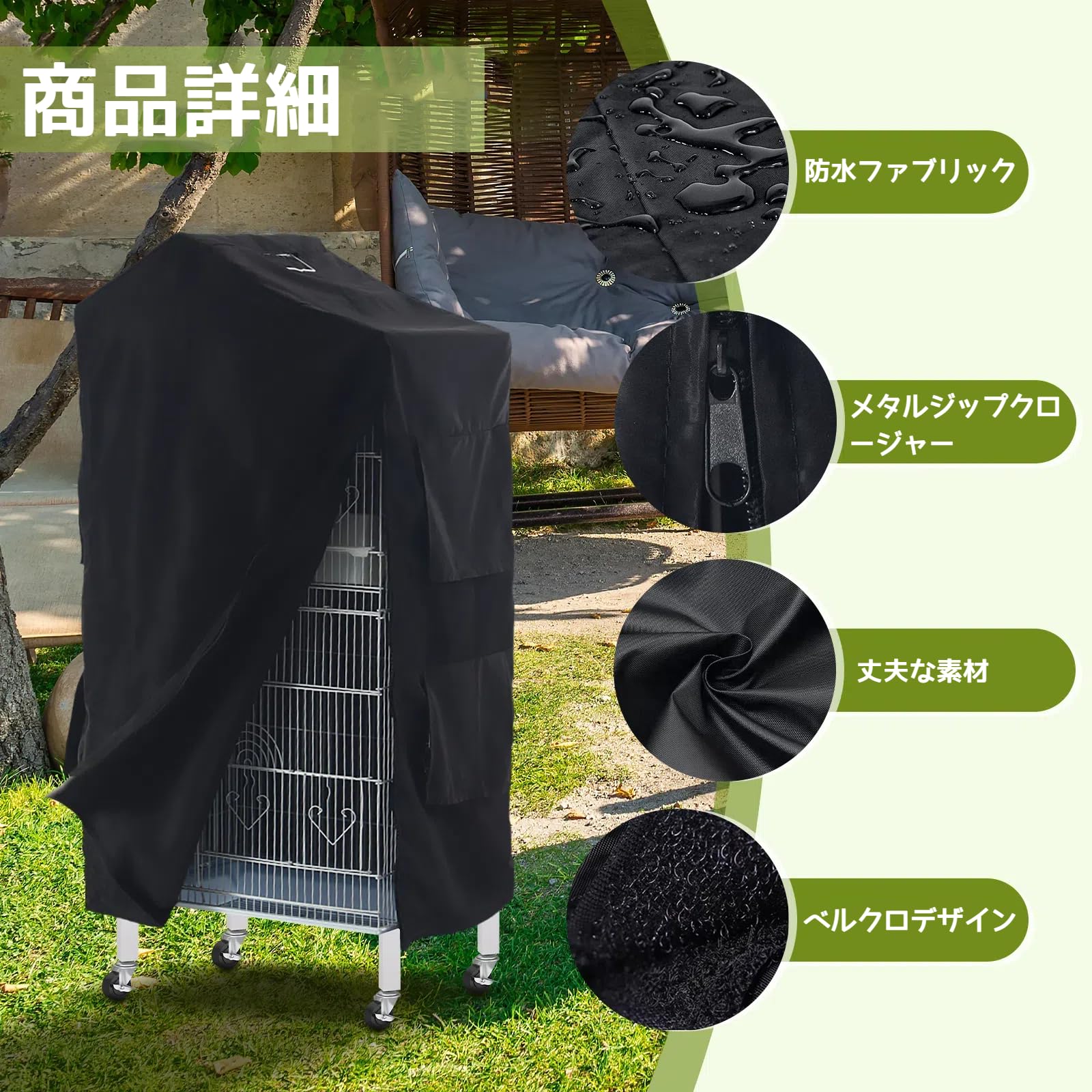 耐久性ジッパー:金属製ジッパーを採用し、繰り返しの開閉にも耐える丈夫さ。ケージにしっかり固定でき、鳥の安全を確保します。