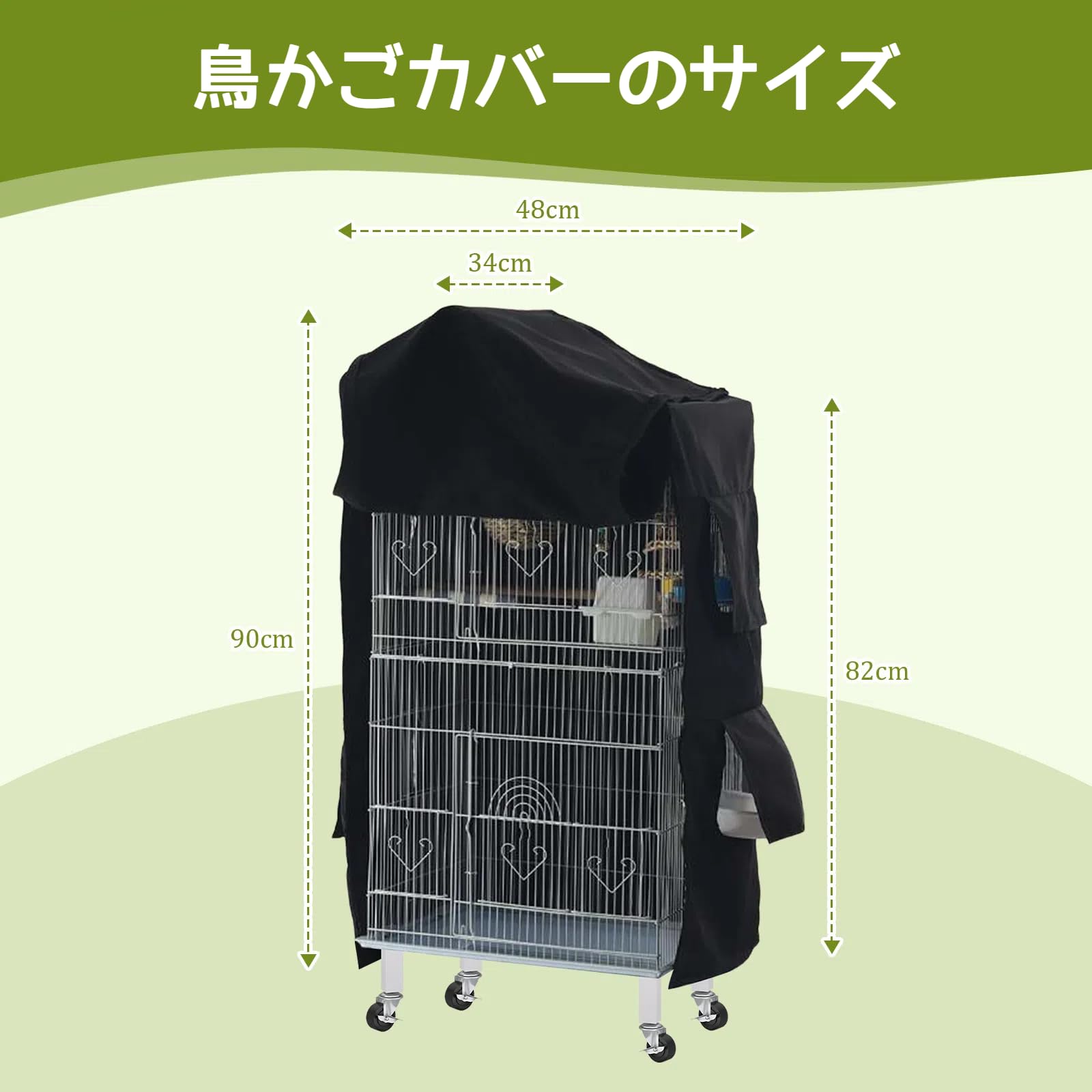 高品質遮光素材:防塵性に優れた高密度生地を使用。適度な遮光効果で鳥の安眠を促進し、自然な睡眠リズムをサポートします。通気性も確保した快適設計です。
